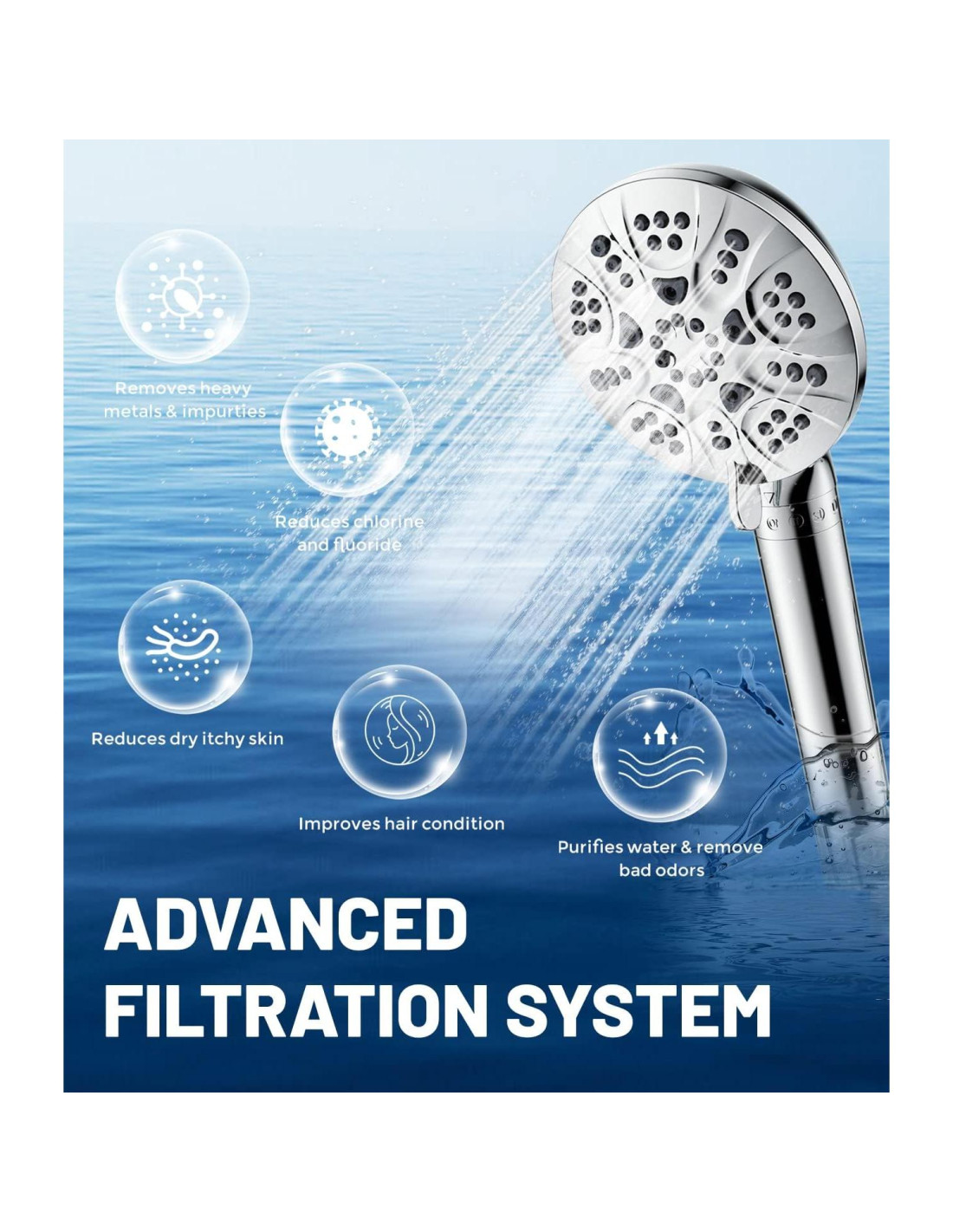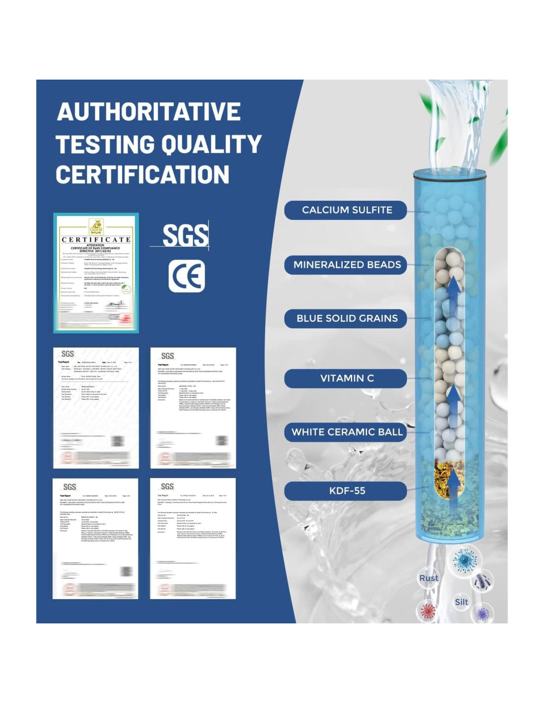 - Este filtro de ducha consiste en KDF-55, sulfito de calcio, granos sólidos azules, vitamina C, perlas mineralizadas y perlas de cerámica blanca. Estos materiales pueden eliminar cloro, metales pesados y otras sustancias dañinas de manera efectiva. Los filtros de sedimentos de múltiples etapas ofrecen la máxima filtración de agua para neutralizar olores, equilibrar los niveles de pH e infundir minerales beneficiosos en tu piel, uñas y cabello.