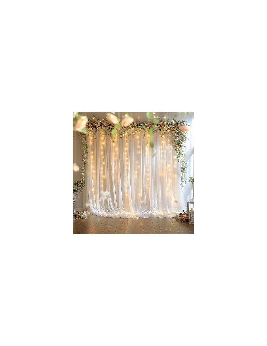 - Tejido Drapado Transparente y Elegante: Elaboradas con tul suave de alta calidad, nuestras cortinas de fondo blancas irradian elegancia y sofisticación. Ligeras, románticas y con un drapeado natural, aportan un atractivo único a cualquier fiesta o evento, asegurando una atmósfera memorable.