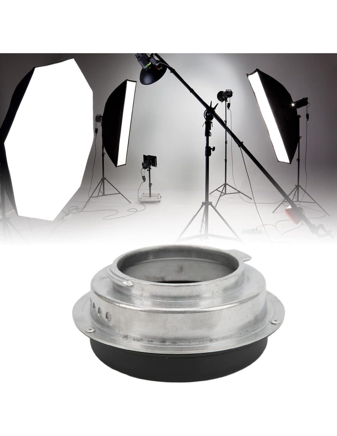 - Fuerte universalidad: Estándar para montura broncolor y montura bowens, fuerte universalidad, adecuado para lámpara fotográfica profesional y caja de luz suave fotográfica.