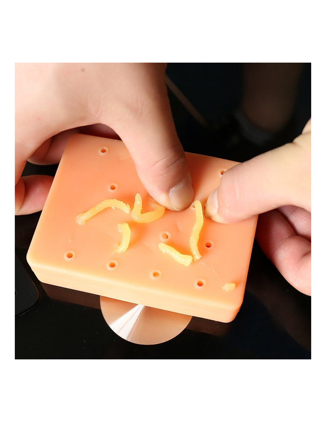 Especificaciones del Producto: Material del Producto: Silicona ecológica para el reventador y material natural para la recarga, parece una espinilla real, sin olor y 100% seguro para tu piel. Características del Producto: Divertido: El Juguete de Reventar Espinillas es un pequeño juguete de mano que te permite reventar espinillas falsas pero disfrutar de verdadera felicidad y relajación. Función: Es un nuevo juguete que te brinda felicidad, diversión y proporciona alivio del estrés y reducción de presión de una manera fácil, fácil para que juegues en cualquier lugar. Reutilizable: La almohadilla recargable y el pus de espinilla reutilizable aseguran que la diversión nunca termine, disfruta de tu "loco" interior. Contenido del Paquete: 1 x Almohadilla de Reventar 1 x Recarga 1 x Herramienta de Recarga. NOTA: Por favor, calienta con agua a unos 60 grados Celsius antes de recargar, y siempre hay un poco de desperdicio durante el reciclaje de la recarga, así que puedes comprar una recarga más por si acaso.