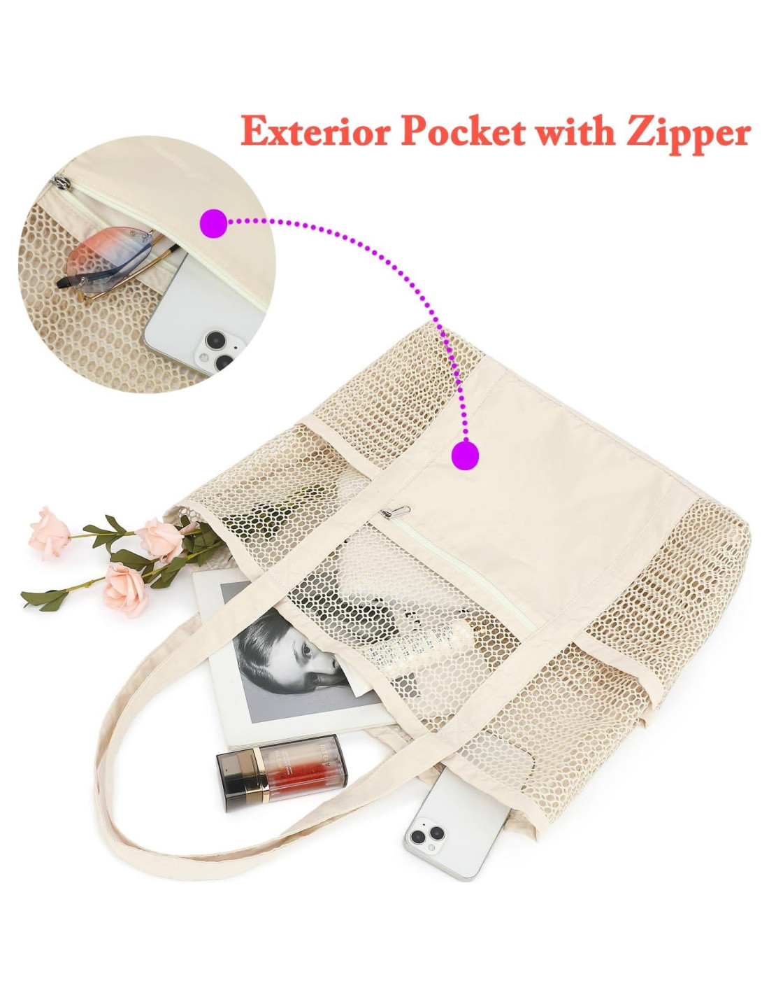 Bolsa de Playa de Malla Elegante, Bolsa de Playa Transparente para Mujeres