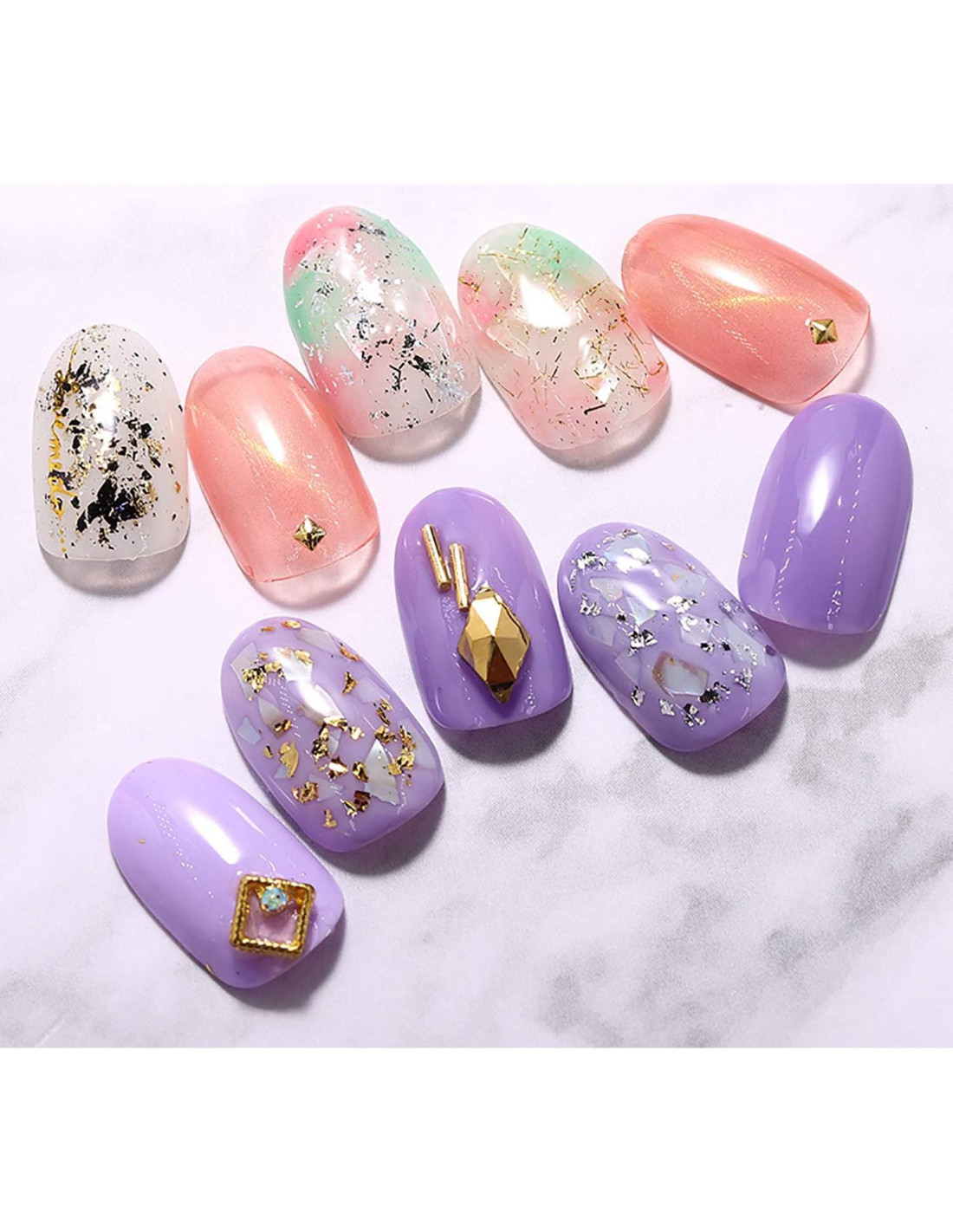 - Almacenamiento Conveniente Cada color de copos de hoja de oro se almacena en una botella de plástico separada para que los copos de oro no se filtren. Las botellas de plástico son impermeables, duraderas y convenientes de usar.