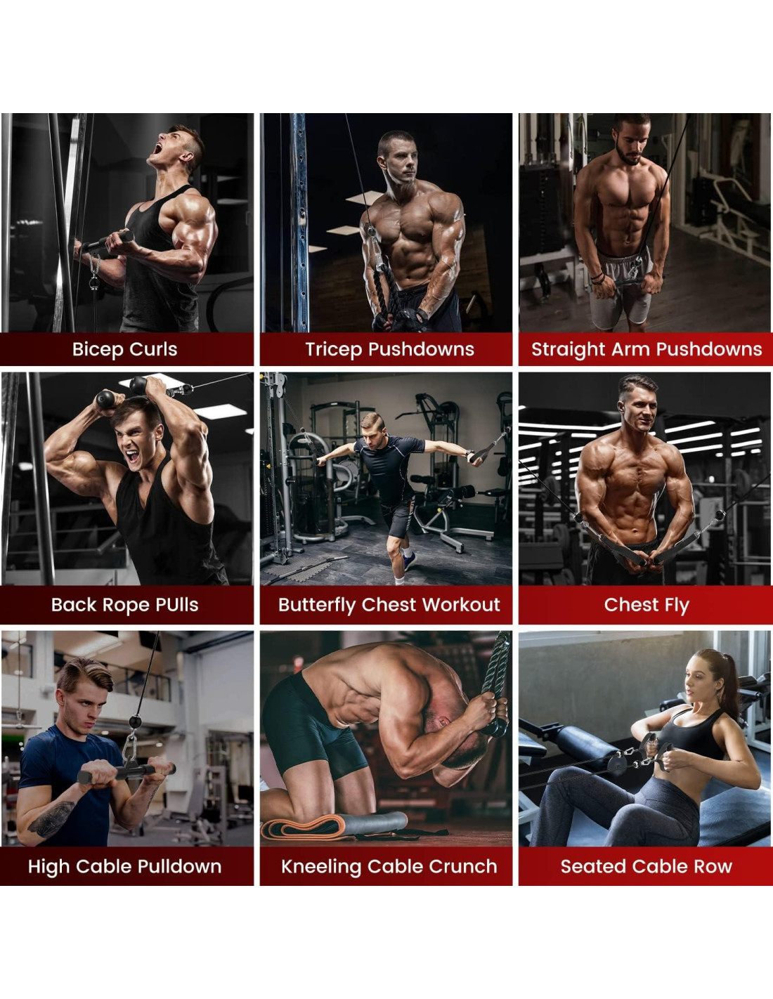 - [3 mangos desmontables y entrenamiento de cuerpo completo] Transforma tu gimnasio en casa en una estación de entrenamiento versátil con nuestro sistema de polea de entrenamiento. Con tres mangos desmontables (barra recta, cuerda de tríceps, mangos de cable suaves), que te permiten cambiar libremente los accesorios para tríceps, lat pulldown, entrenamiento de espalda, curls de bíceps, remo con cable, etc. Ideal para rehabilitación de hombros, resistencia o quema de grasa, nuestro sistema de polea de peso satisface todas tus necesidades.