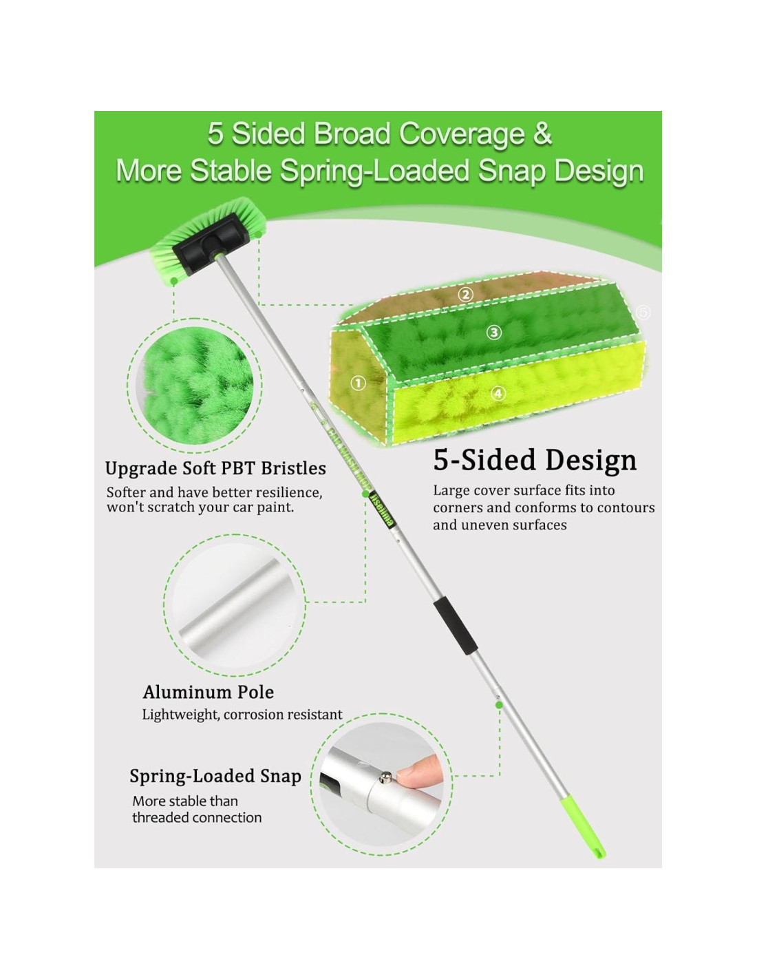 - DISEÑO DE 5 LADOS: Puede maximizar el área de contacto de la superficie, cubriendo un área más grande y puedes limpiar la suciedad en múltiples ángulos, ahorrando tiempo y esfuerzo en la limpieza. Las cerdas envuelven completamente toda la cabeza del cepillo, por lo que no tienes que preocuparte por golpear o rayar el auto con el plástico duro, lo que hace que sea un cepillo de lavado de camiones perfecto.