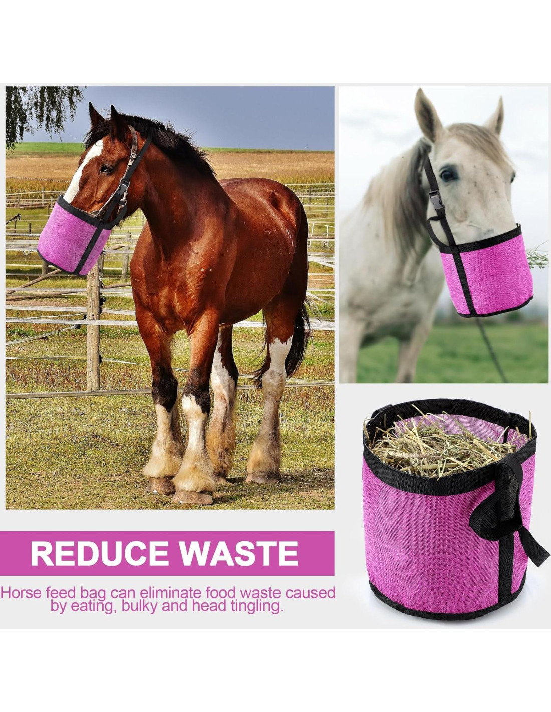 - Reduce el Desperdicio de Comida: estas bolsas para alimentar caballos están diseñadas para mantener a los caballos fuera de entornos de alimentación complejos y reducir el desperdicio de comida por comer y el cosquilleo en la cabeza