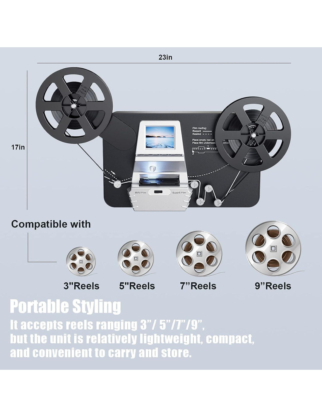 - Digitalizador totalmente automatizado, escáner de películas de 8mm para convertir viejos reels de películas de 8mm y Super 8 en videos digitales, soporta reels de 3'', 5'' y 9'' y 1080P.