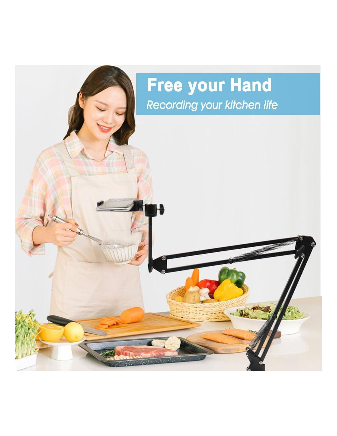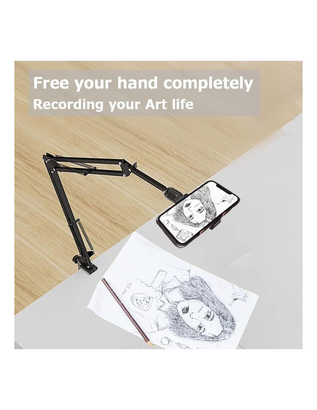 - [Paquete incluido] [Ampliamente utilizado] 1x brazo de soporte de trípode superior, 1x base de abrazadera de mandíbula, 1x cabezal de bola de 360, 1x soporte para teléfono, es perfecto para filmar videos desde arriba o tomar fotos y se puede utilizar ampliamente en transmisión en vivo, grabación de video, dibujo, cocina, fotografía plana, etc. solo disfruta de tu vida