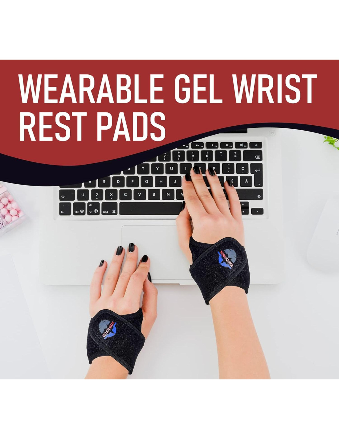 - Pads de Gel para Muñeca Portátiles - Diseñados para ser usados cuando estás sentado y trabajando en tu escritorio, estos pads de muñeca para mouse y teclado se pueden usar en ambas muñecas para ayudar a aliviar la presión, tensiones y estrés en tus articulaciones, músculos y tendones.