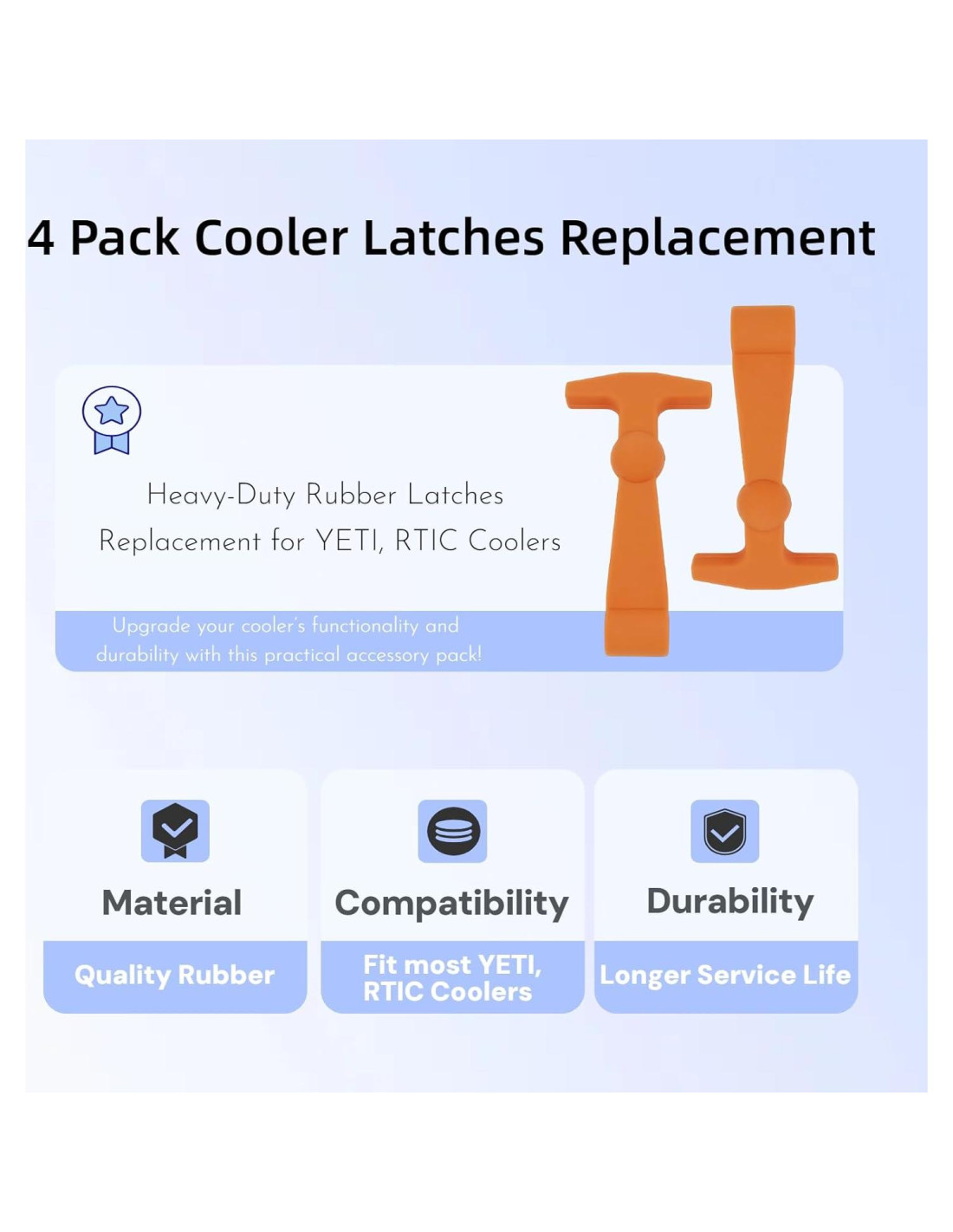 - Diseño de Alta Resistencia y Duradero: Hecho de caucho de alta calidad, estos ganchos para nevera están diseñados para soportar condiciones climáticas extremas, uso intensivo y desgaste diario; perfectos para YETI, RTIC y otras marcas populares de neveras, asegurando un rendimiento duradero