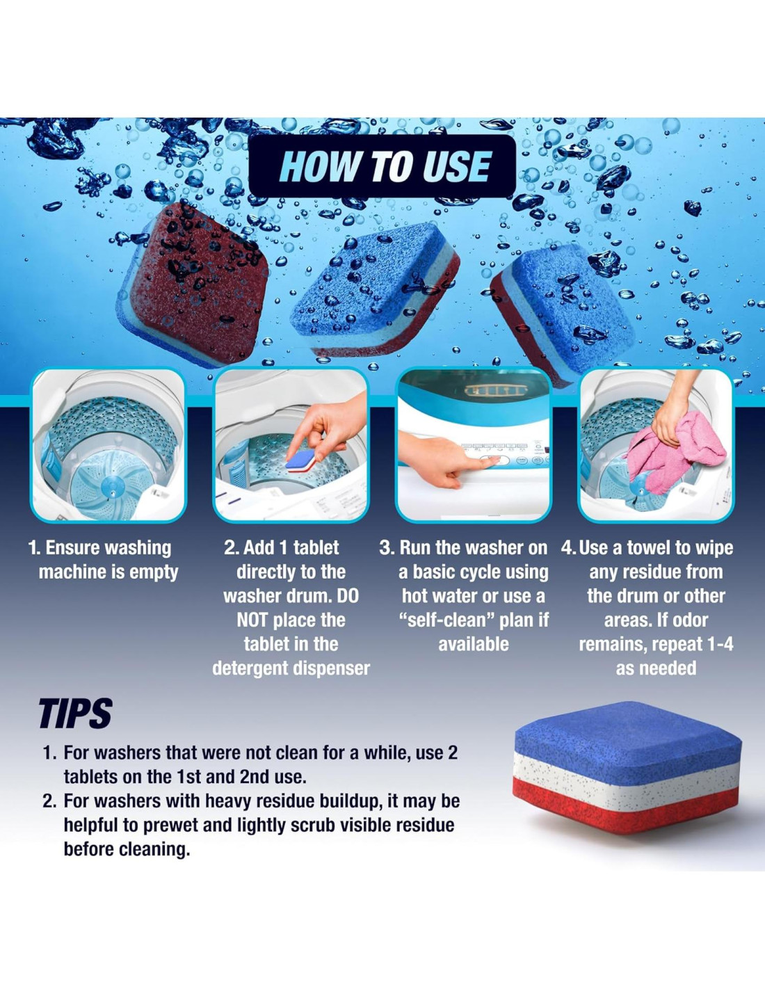 - Formulación Especializada para Lavadoras de Carga Superior: A diferencia de soluciones universales, nuestras Tabletas Limpiadoras de Lavadoras están diseñadas y formuladas exclusivamente para lavadoras de carga superior; Esta especialización asegura máxima eficiencia y compatibilidad; Nuestras tabletas son seguras para sépticos y se pueden usar con cualquier lavadora de Alta Eficiencia o estándar; Es compatible con todas las principales marcas de lavadoras como GE, Bosch, LG, Samsung, Whirlpool, Maytag, Amana, Hair, Electrolux, y más