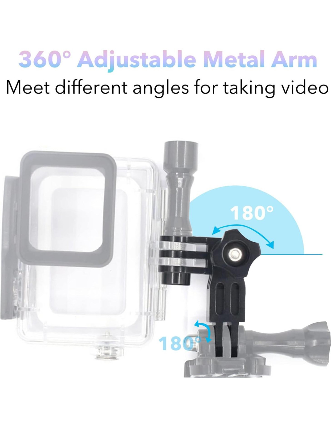 - Fácil de instalar. Con una llave ofrecida, el paquete de 2 accesorios para cámaras de acción es fácil de apretar y aflojar el tornillo de manera más conveniente. Los adaptadores de montaje de juntas rectas de brazo pivotante están hechos de metal, lo que proporciona un uso a largo plazo y una opción de bloqueo más confiable.