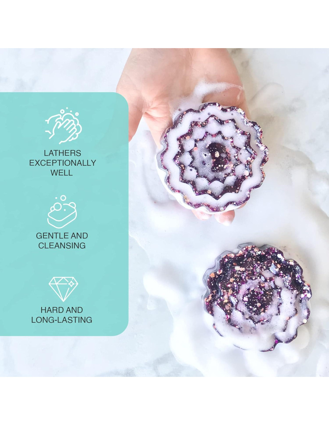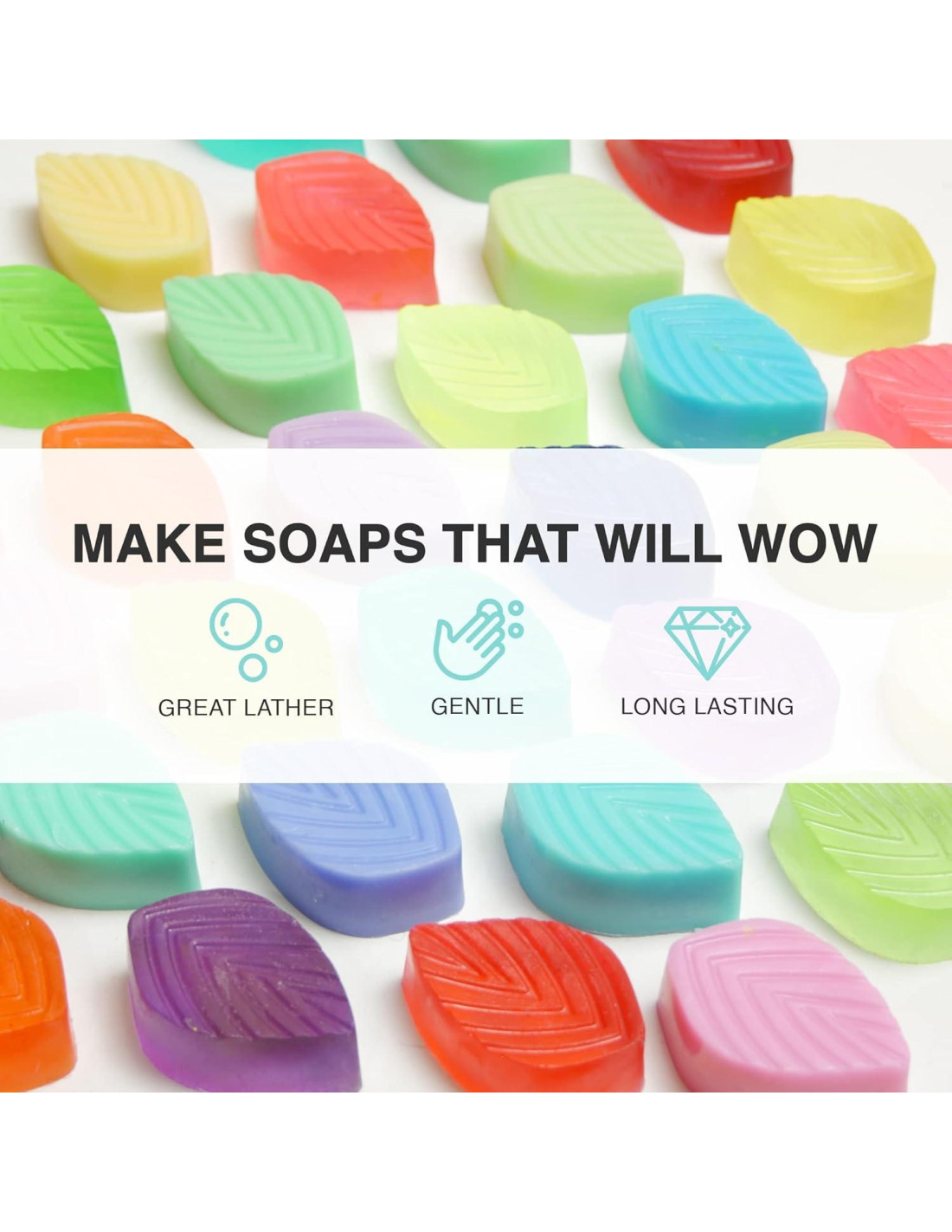 - ALTAMENTE PERSONALIZABLE - Crea jabones únicos con nuestras bases de jabón, que soportan hasta un 3% de aditivos como aceites esenciales, exfoliantes y colorantes. Nuestra base de jabón derretir y verter es fácil de trabajar. Puedes incrustar jabones más pequeños, hierbas y semillas dentro de la base para efectos visuales impresionantes.