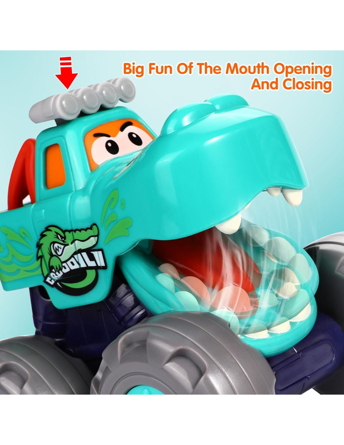 - DIVERTIDOS CAMIONES JUGUETES DE MONSTRUO: 3 Lindos coches de juguete de animales para niño de 1 año incluyen 3 camiones monstruo únicos con temática de animales: un toro rojo, un cocodrilo verde y un leopardo amarillo. Cada camión diseñado con bocas y dientes que se abren añade una capa extra de emoción, despertará la imaginación de su hijo. El diseño divertido y el estilo genial del juguete para niño de 1 año mantienen a sus hijos riendo y jugando durante horas.