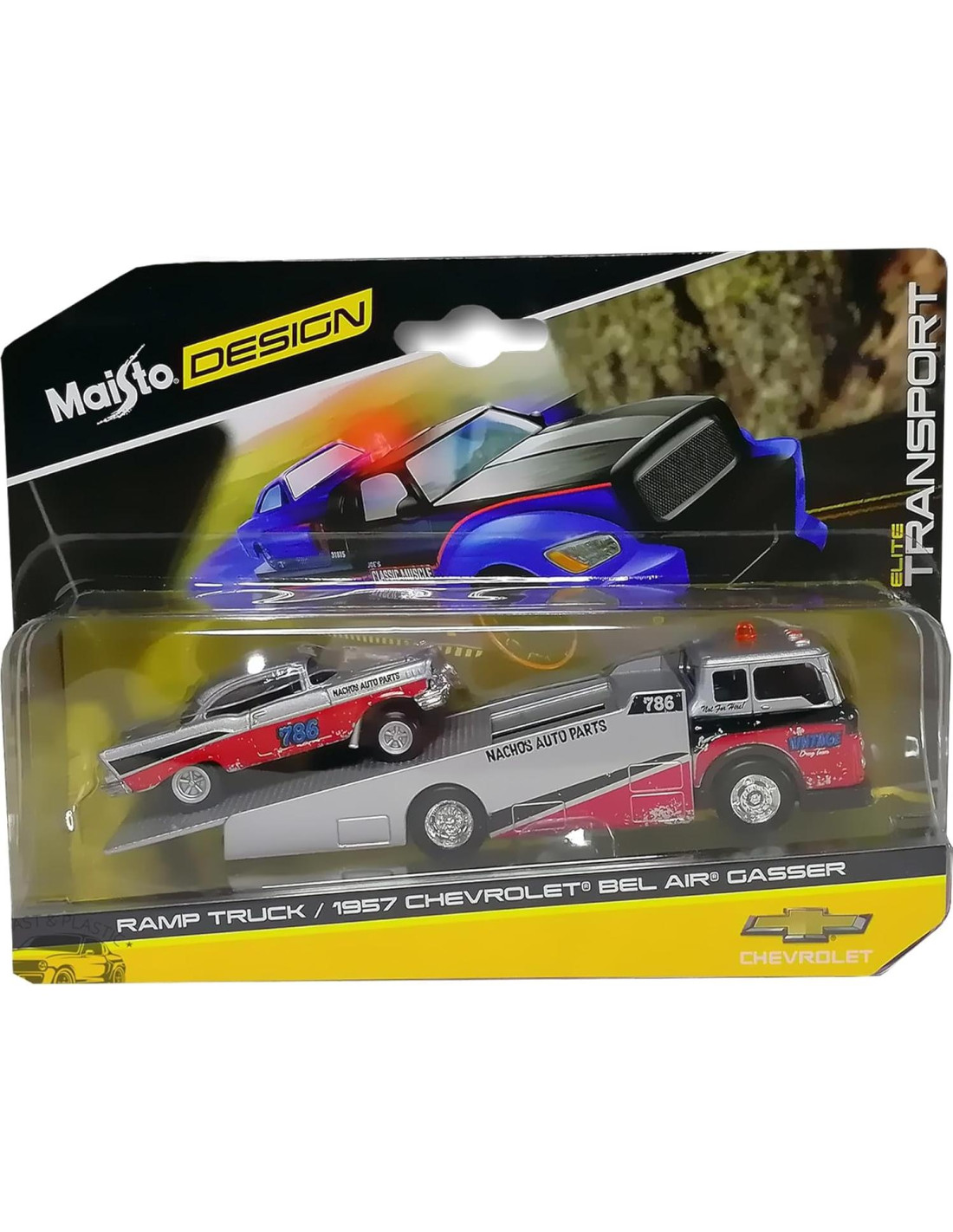 Bburago Camión y Coche de la Colección de Modelos a Escala 1/64 de la Serie Elite Transport