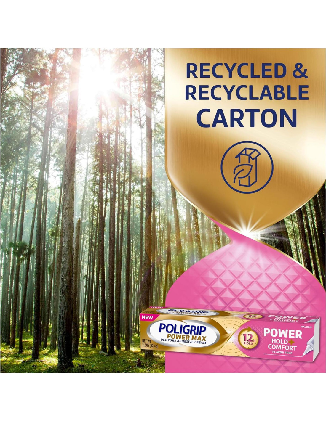 Poligrip Poder Máximo Sujeción Más Comodidad es un adhesivo de acción dual que combina una sujeción superior y comodidad. Esta combinación única crea una barrera protectora entre tus dentaduras y encías, reduciendo la presión en las encías y proporcionando un ajuste personalizado durante todo el día. Ofreciendo nuestra fórmula de sujeción más fuerte dentro de la gama Poligrip, este adhesivo se activa al contacto con la saliva y proporciona una capa de amortiguación suave para ayudar a absorber la presión de tu dentadura. Nuestro sistema de polímero dual se adapta a tu boca para crear un agarre seguro en tus dentaduras y ofrece comodidad duradera durante todo el día. Olvidarás que llevas dentaduras a medida que avanza el día. La boquilla de precisión te ayuda a aplicar exactamente la cantidad correcta y permite que el adhesivo forme un sello alrededor. Poligrip Poder Máximo Sujeción Más Comodidad proporciona una sujeción de 12 horas que está diseñada para asegurar tus dentaduras parciales o completas en su lugar todo el día, permitiéndote comer, hablar y sonreír con confianza. vs. sin adhesivo Carboximetil Celulosa (CMC) & Polímero de Sal Doble + Carbómero