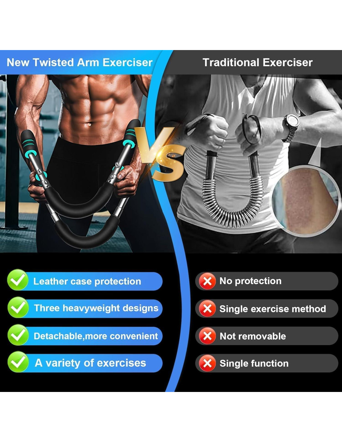 - Herramienta de fitness portátil y eficiente para todo el cuerpo. El Entrenador de Brazos Twister es una herramienta de ejercicio compacta y eficiente para todo el cuerpo. Su diseño único en forma de U no solo ejercita los brazos, sino que también trabaja múltiples grupos musculares, incluyendo pecho, muñecas, espalda, piernas y hombros, proporcionando una experiencia de ejercicio diversa.