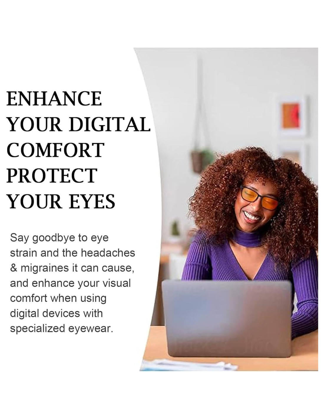 - Gafas con filtro de luz azul: las gafas bloqueadoras de luz azul cuentan con lentes de nano-resina con un tinte ámbar, diseñadas para proteger tus ojos de la dañina luz azul. Probadas por dispositivos profesionales, nuestras gafas han demostrado bloquear el 99.9% de la luz azul, mientras que otras lentes de nylon incoloras ordinarias solo pueden bloquear el 30%. Al usar las gafas, puedes proteger perfectamente tus preciosos ojos y prevenir la fatiga ocular, sequedad e irritación.