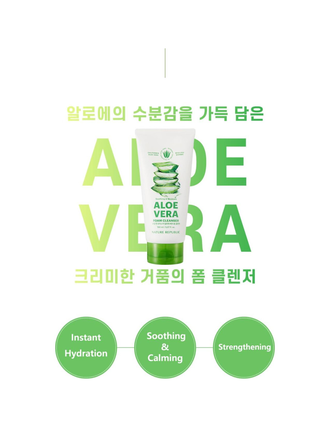 Limpiador Espumoso de Aloe Vera Calmante e Hidratante Nature Republic 150 ml (5.07 fl. Oz)