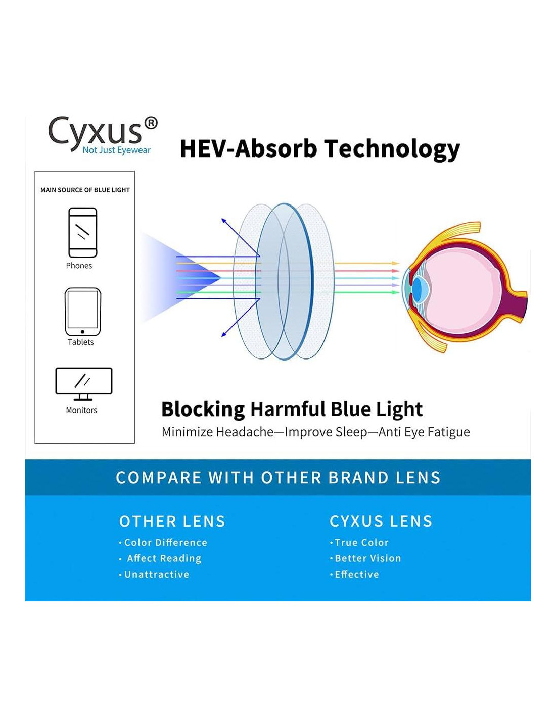 - FILTRO DE LUZ AZUL: Las lentes de luz azul de Cyxus pueden filtrar el 90% de la dañina luz azul, que proviene de la radiación azul de computadoras / móviles / TV. Protege tus ojos a tiempo, añade un paraguas protector a tus ojos