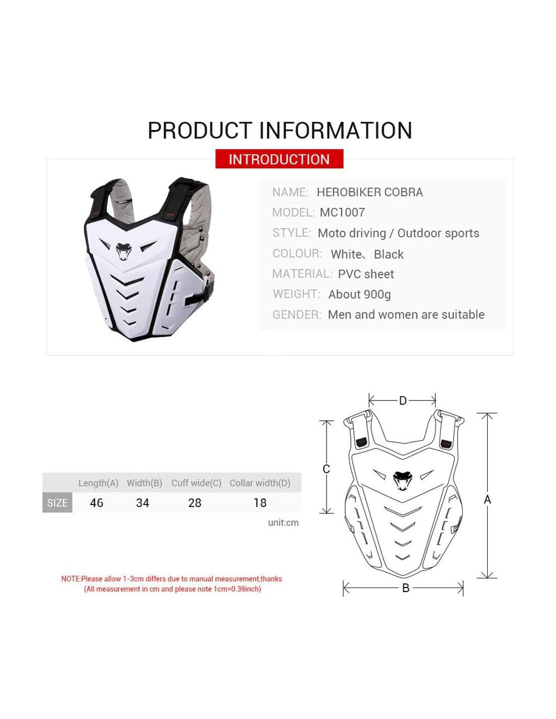- [SEGURIDAD - DOBLE PROTECCIÓN] El interior está relleno con tela de algodón, que es muy suave y cómoda, reduciendo efectivamente el daño causado por impactos; El exterior utiliza una carcasa exterior resistente para proporcionar una fuerte protección para tu pecho y columna vertebral.
