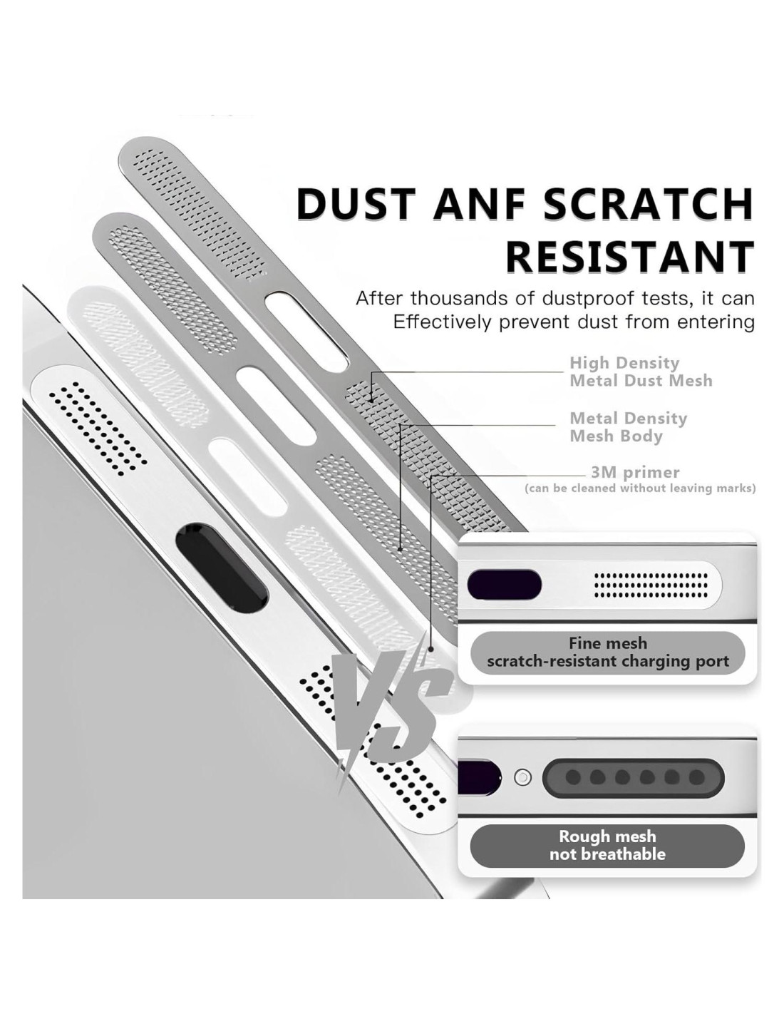 ¡Protege tu teléfono Apple! Estas pegatinas a prueba de polvo se ajustan perfectamente a los puertos de carga y altavoces. Bloquean el polvo y las pelusas con un diseño de malla fina. Ultra delgadas, sin impacto en la carga o el sonido. Fácil instalación. Confiable en Amazon. Se ajusta perfectamente al cuerpo del teléfono, la tira a prueba de polvo está ingeniosamente incrustada. Hecha de un material fino como un filtro, bloquea eficazmente partículas pequeñas como polvo y pelusas, protegiendo la limpieza interna de tu teléfono desde el principio y creando una barrera confiable a prueba de polvo para tu querido dispositivo. Estas pegatinas a prueba de polvo están hechas de material impermeable, por lo que no se caerán al entrar en contacto con el agua. Mantienen eficazmente el polvo alejado de los puertos de tu dispositivo, asegurando una protección confiable y permitiéndote usar tu teléfono con tranquilidad en todo tipo de entornos. La pegatina a prueba de polvo está diseñada de tal manera que no obstruye la transmisión de sonido.