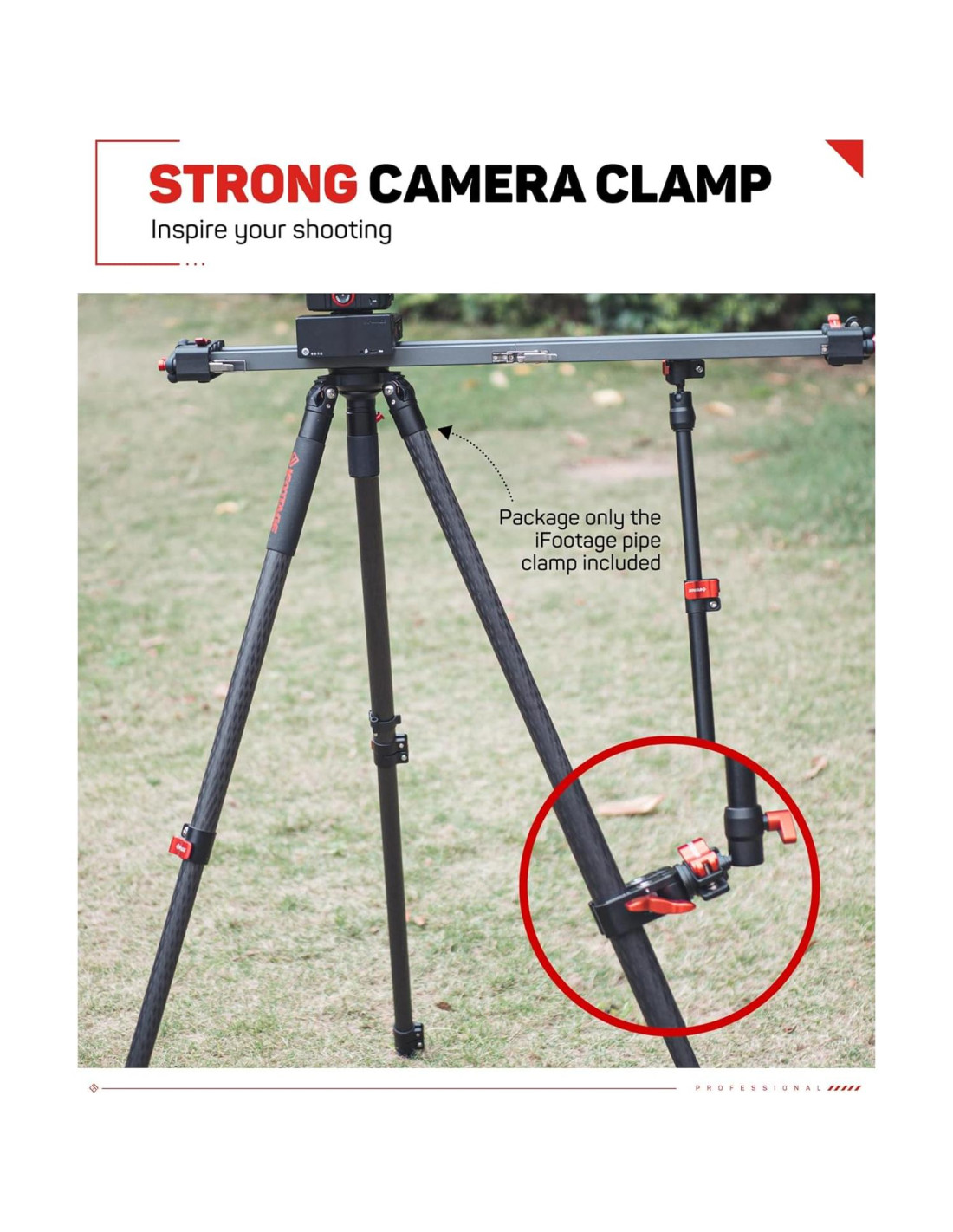 - Boca de Abrazadera Antideslizante: La almohadilla antideslizante en relieve proporciona a la abrazadera de tubo una fuerza de sujeción más fuerte. Cuando usas la super abrazadera iFootage con MA3-4/MA5-6, puede cargar hasta 6 kg.