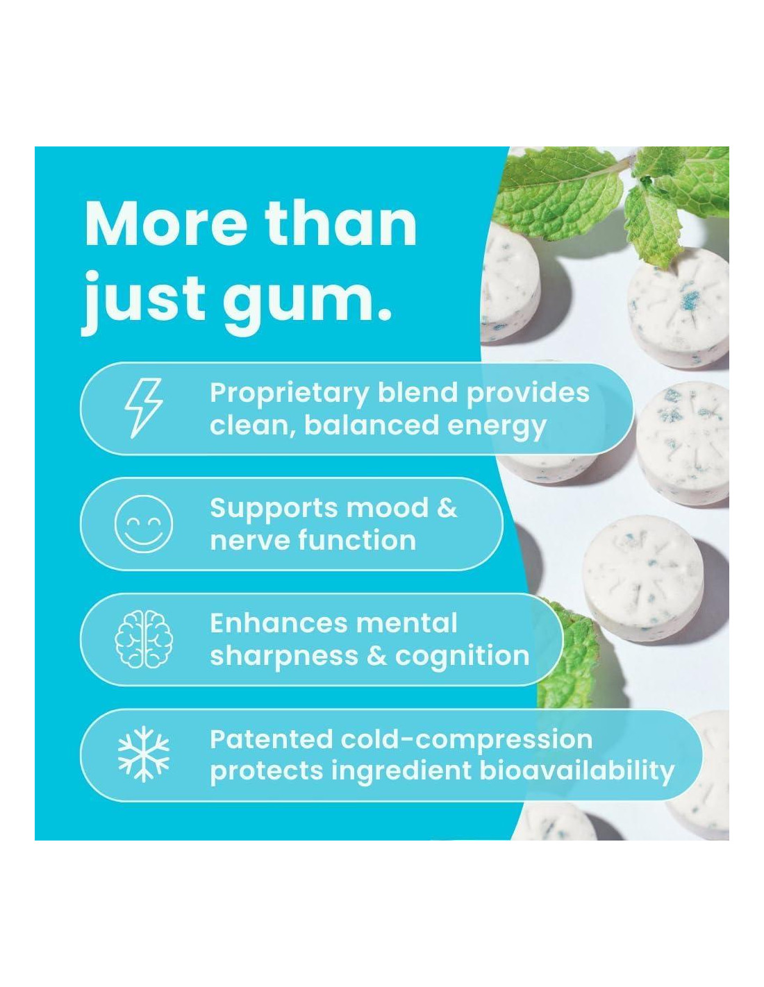 - MEJORA LA CLARIDAD MENTAL - Nuestros suplementos cerebrales para memoria y enfoque están empaquetados en forma de chicle con L-teanina y vitaminas esenciales para ayudarte a mantenerte alerta y enfocado durante todo el día, eliminando la necesidad de esa segunda taza de café.