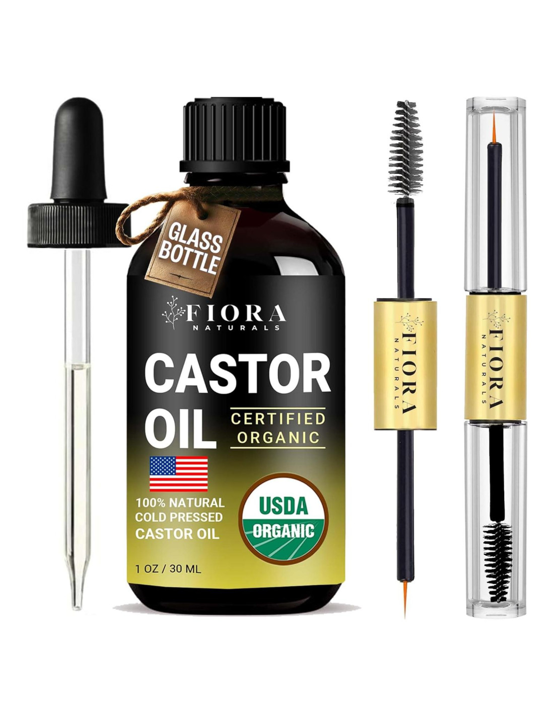 - ACEITE DE RICINO ORGÁNICO CERTIFICADO POR USDA - 100% Natural, prensado en frío, aceite puro y sin diluir sin aditivos ni rellenos. Empaquetado en BOTELLA DE VIDRIO OSCURO para prevenir la oxidación. Viene con tubo de máscara SIN DESORDEN con aplicadores duales para pestañas y cejas. Incluye gotero de vidrio para una fácil aplicación en el cuero cabelludo y el cabello. Empaquetado en EE. UU.