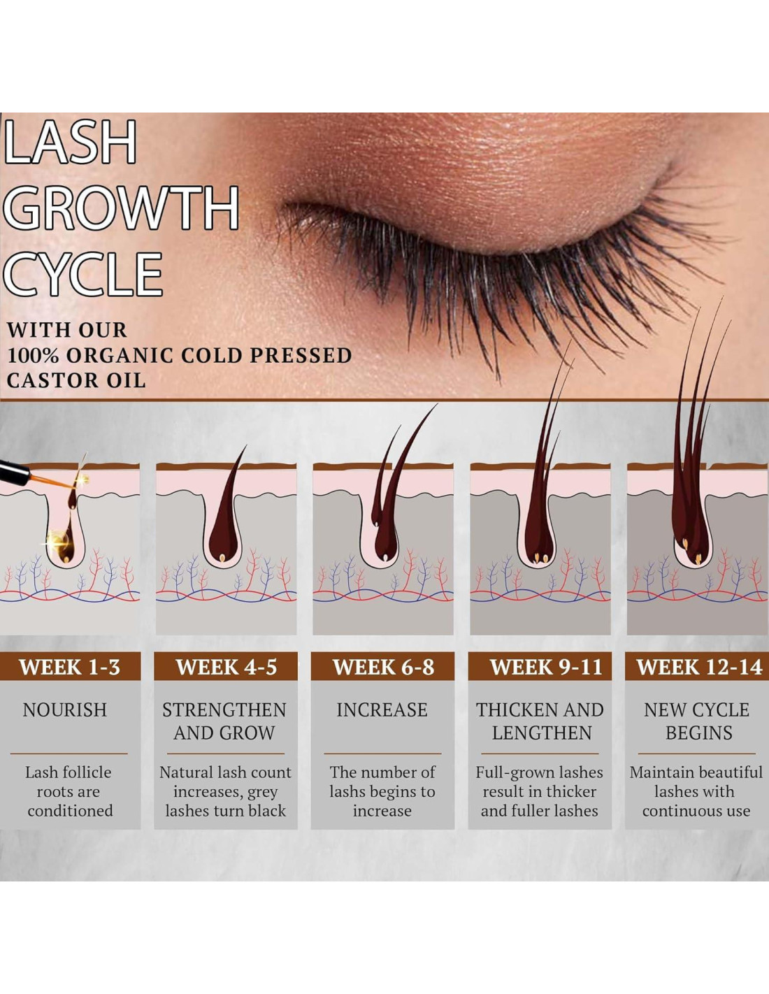 - ACEITE DE RICINO PARA PESTAÑAS Y CEJAS - Nuestro puro aceite de ricino promueve el crecimiento de pestañas y cejas. El gotero de vidrio y el tubo de máscara aseguran una aplicación precisa y almacenamiento higiénico de cepillos reutilizables. Experimenta pestañas más largas y cejas más llenas con el uso regular.