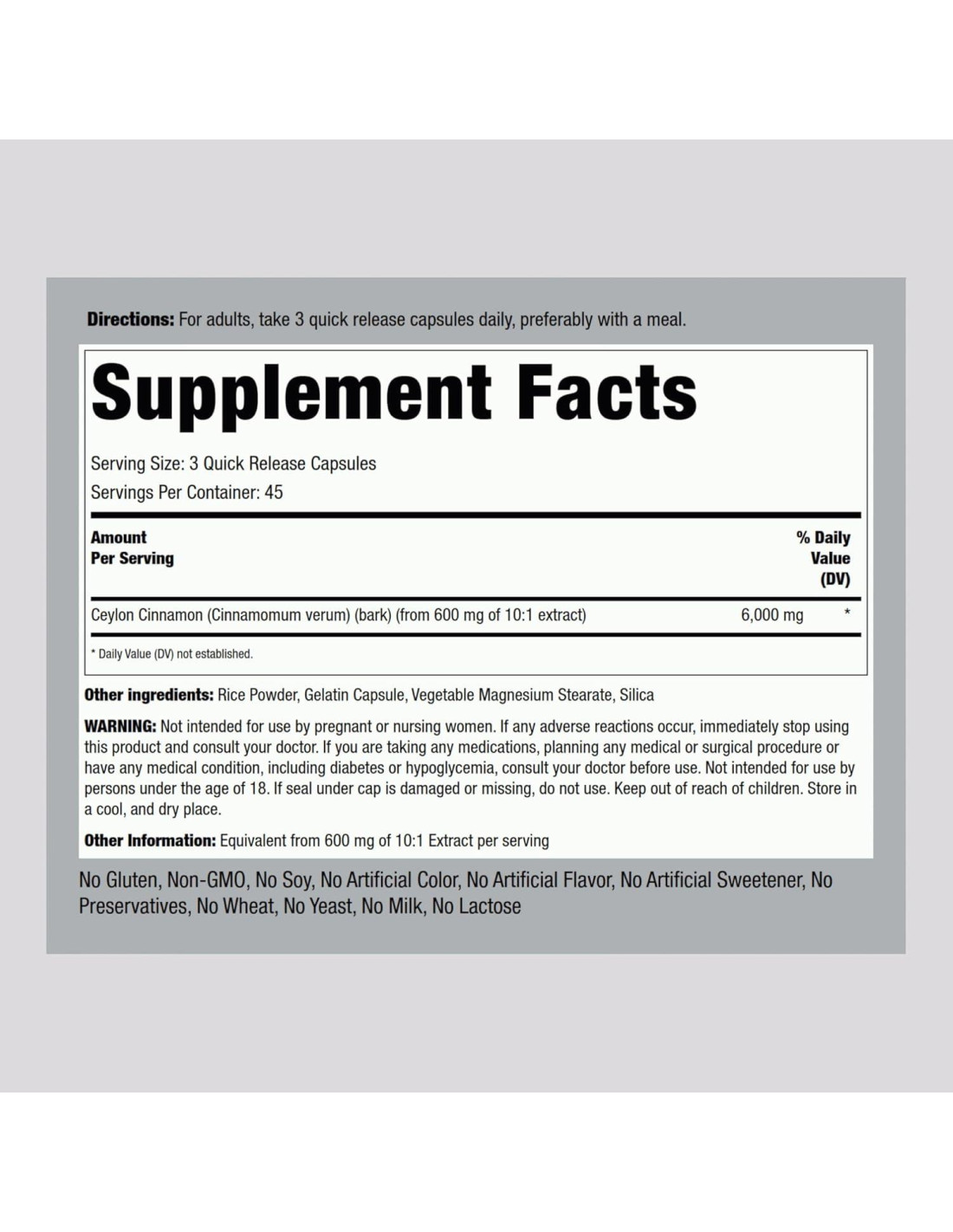 La canela que conocemos en Estados Unidos es generalmente la corteza del árbol de canela en forma de palo. Esta hierba tradicional es una gran adición a cualquier receta de postre o plato principal que necesite un poco de sabor. En Piping Rock, nuestro suplemento concentrado proporciona el equivalente total de 6,000 mg de Canela de Ceilán por porción para un soporte premium. Hay muchas maneras de disfrutar de este suplemento con píldoras, polvo, tabletas, té, gomitas y aceite. La Canela de Ceilán Piping Rock es una fuente premium y esencial de esta maravillosa especia. Compra suplementos Piping Rock ahora y aumenta tu suministro de esta hierba tradicional con nuestra botella de 135 cápsulas. Piping Rock ofrece con orgullo una selección en constante crecimiento de productos diseñados para ayudarte a alcanzar tus objetivos de bienestar únicos. Verificamos todos los productos con agencias de terceros registradas por la FDA, asegurando pureza, potencia, seguridad e innovación en todo lo que hacemos. Estamos comprometidos a apoyarte en tu camino hacia una vida saludable, y te agradecemos por elegirnos.