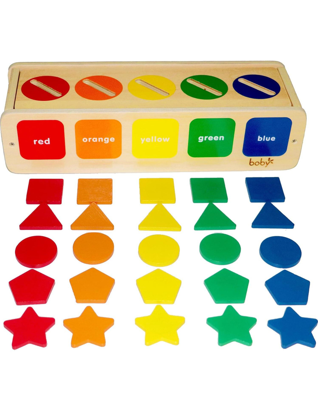 - Total de 25 piezas de madera maciza en 5 colores y 5 formas, también ofrece 13 piezas de tarjetas de respuesta para ejercitar el pensamiento lógico (modo avanzado)