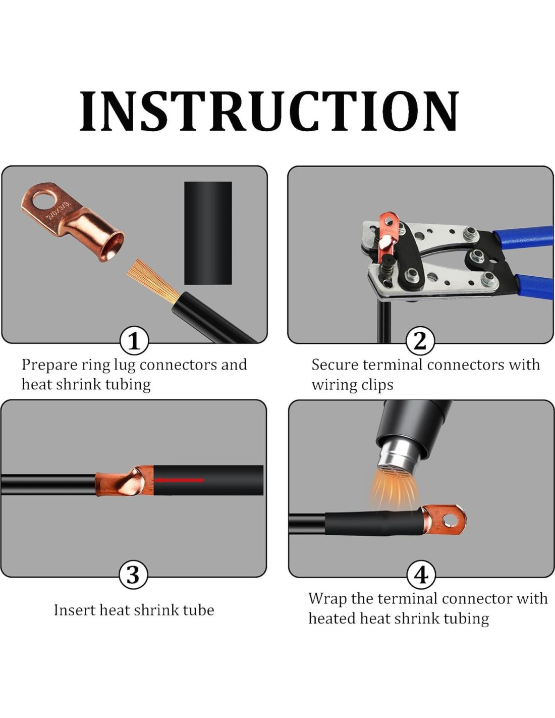 - Diseño de Extremo Cerrado: Terminales de anillo de cobre de 0 gauge y 00 gauge con extremo sellado; Mantiene los cables secos y seguros; Soporta tanto crimpado como soldadura