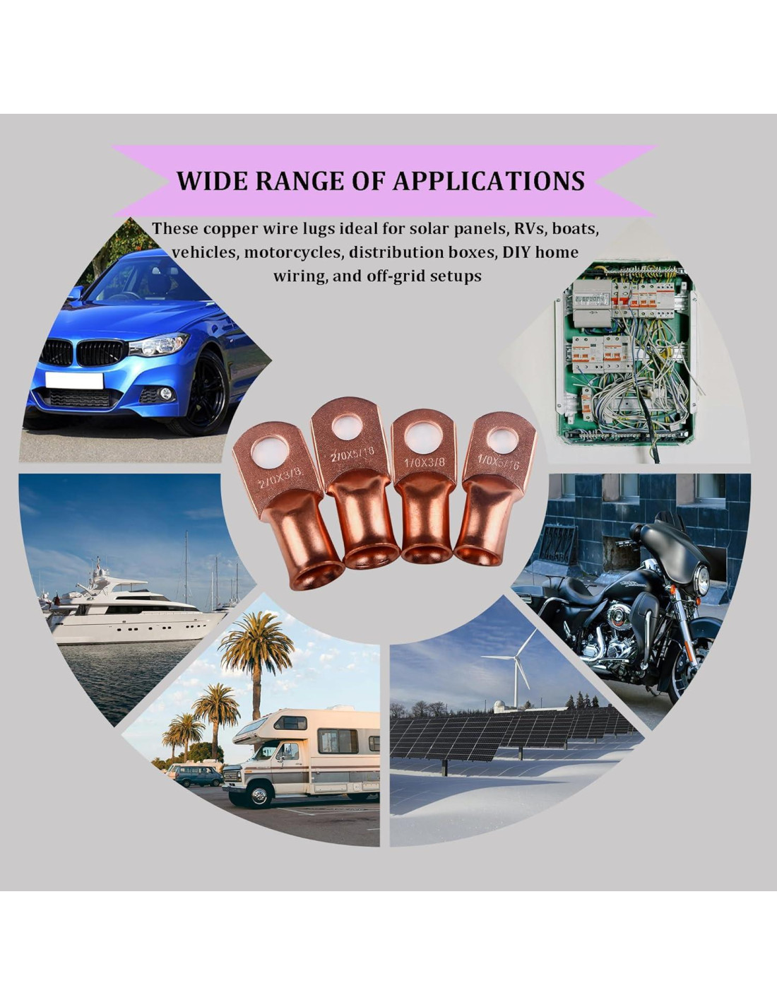 - Amplia Gama de Aplicaciones: Estos terminales de cable de cobre son ideales para paneles solares, casas rodantes, barcos, vehículos, motocicletas, cajas de distribución, cableado doméstico DIY y configuraciones fuera de la red