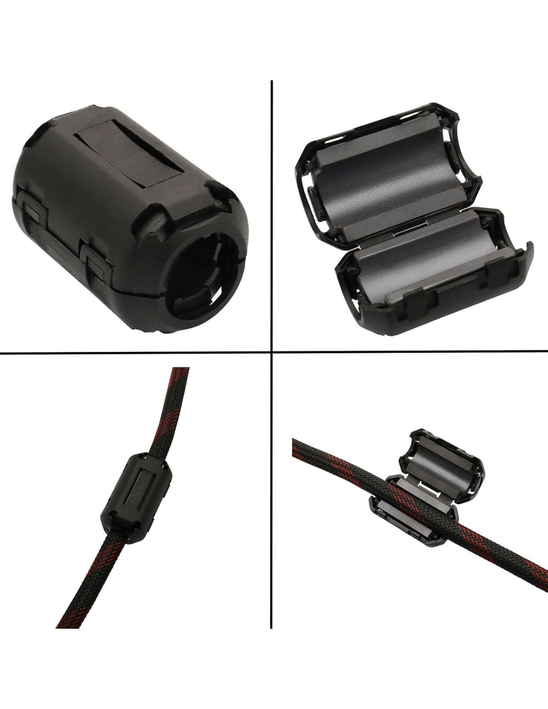 - Ocasión de Aplicación: Estos núcleos de ferrita de clip son excelentes para reducir la interferencia de alta frecuencia causada por electrodomésticos y electrónica. Detiene EMI y RFI de manera efectiva para mejorar la integridad de la señal. Apto para cables con aproximadamente 3.5mm, 5mm, 7mm, 9mm y 13mm de diámetro interno, que se puede aplicar ampliamente a una variedad de cables de datos, cable USB, línea de datos, cable AV, teléfono, cable de alimentación, coaxial, audio, cables de video, etc.