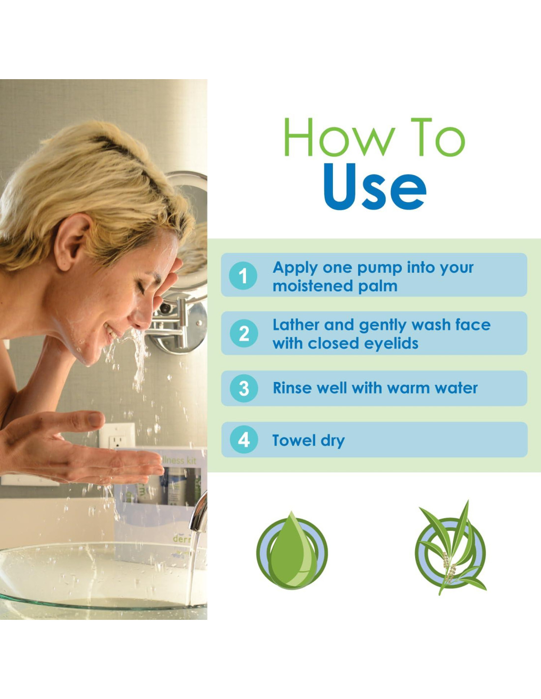 - Hidratación avanzada: Nuestro limpiador para párpados y facial, suave pero poderoso, está infusionado con 2% de aceite de árbol de té puro y Manteca de Karité para una hidratación profunda sin ingredientes agresivos