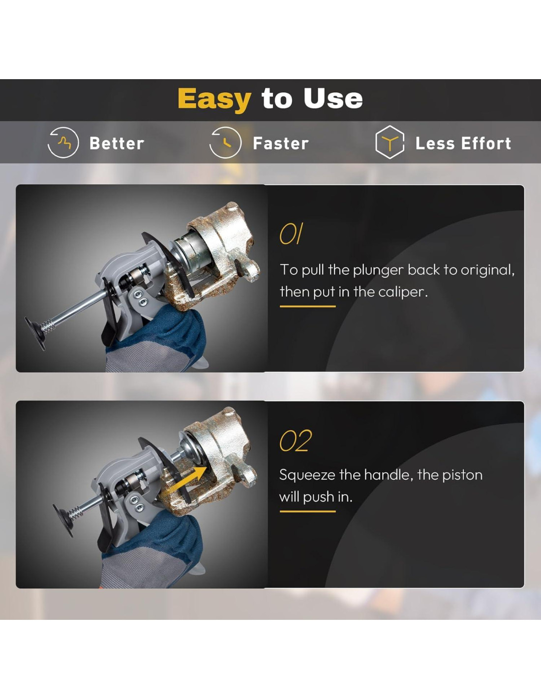 - Compatible con: La herramienta de caliper de freno comprime los pistones de freno simultáneamente, funciona bien en la mayoría de los calipers de freno de coches y camiones ligeros. (PS: Es adecuada para frenos de disco, no para frenos de tambor, por favor confirme antes de comprar).