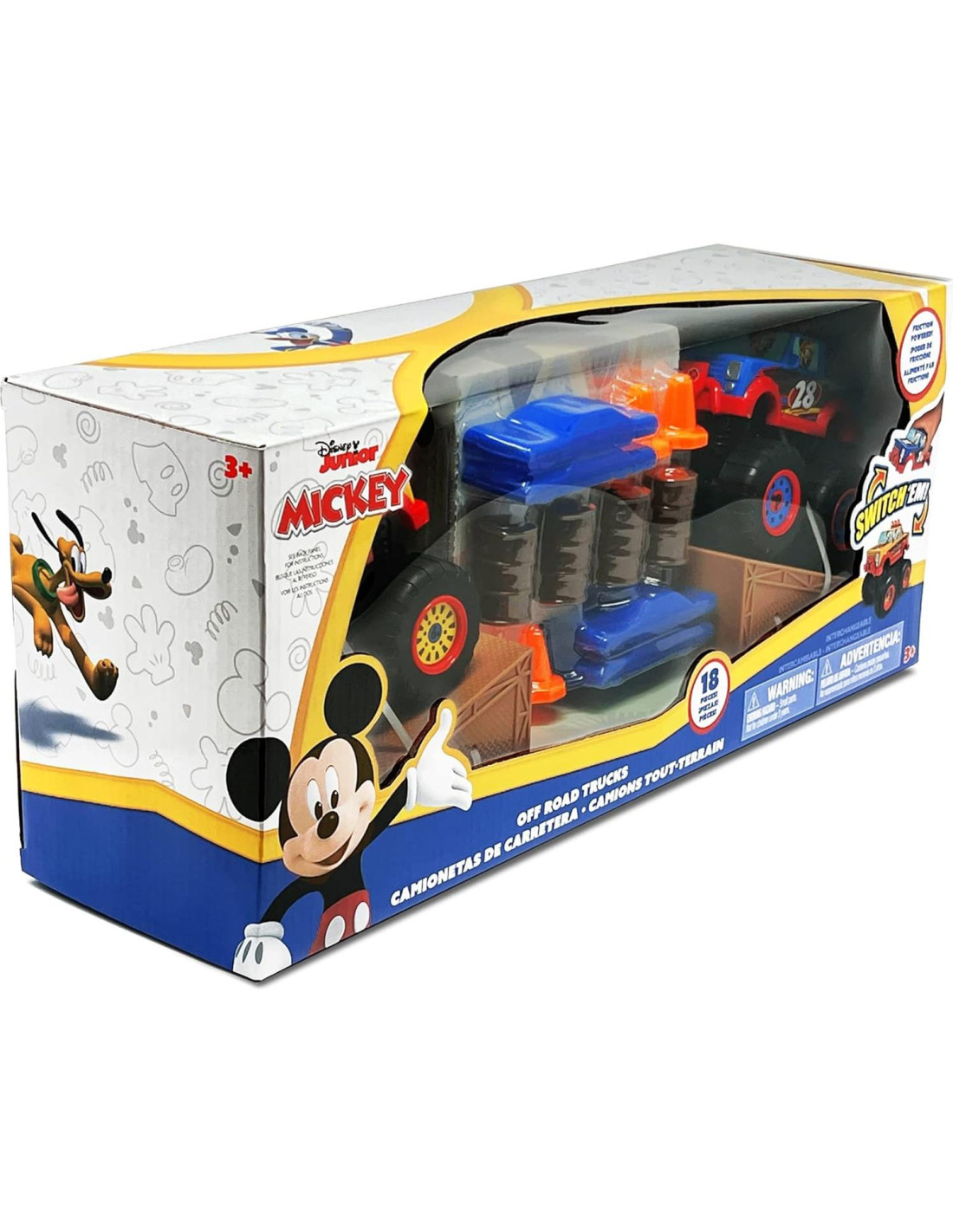 Mickey está listo y preparado para algunas aventuras de Camiones Monstruo todo terreno. Los Camiones Monstruo de Disney Junior Mickey tienen grandes colores y estilo de Mickey Mouse. Con 2 Camiones Monstruo de fricción de Mickey, los niños pueden crear sus propias aventuras todo terreno de Mickey. ¡Conduce a través de los conos y barriles, salta la rampa o simplemente corre por el suelo! Con los vehículos diseñados Switch 'Ems, los niños pueden quitar el cuerpo del camión del chasis y cambiarlo a otro chasis para mezclar y combinar los colores del camión. 18 piezas en total, incluyendo chasis intercambiables para mezclar la diversión, ¡es hora de un poco de aventura todo terreno de Disney!