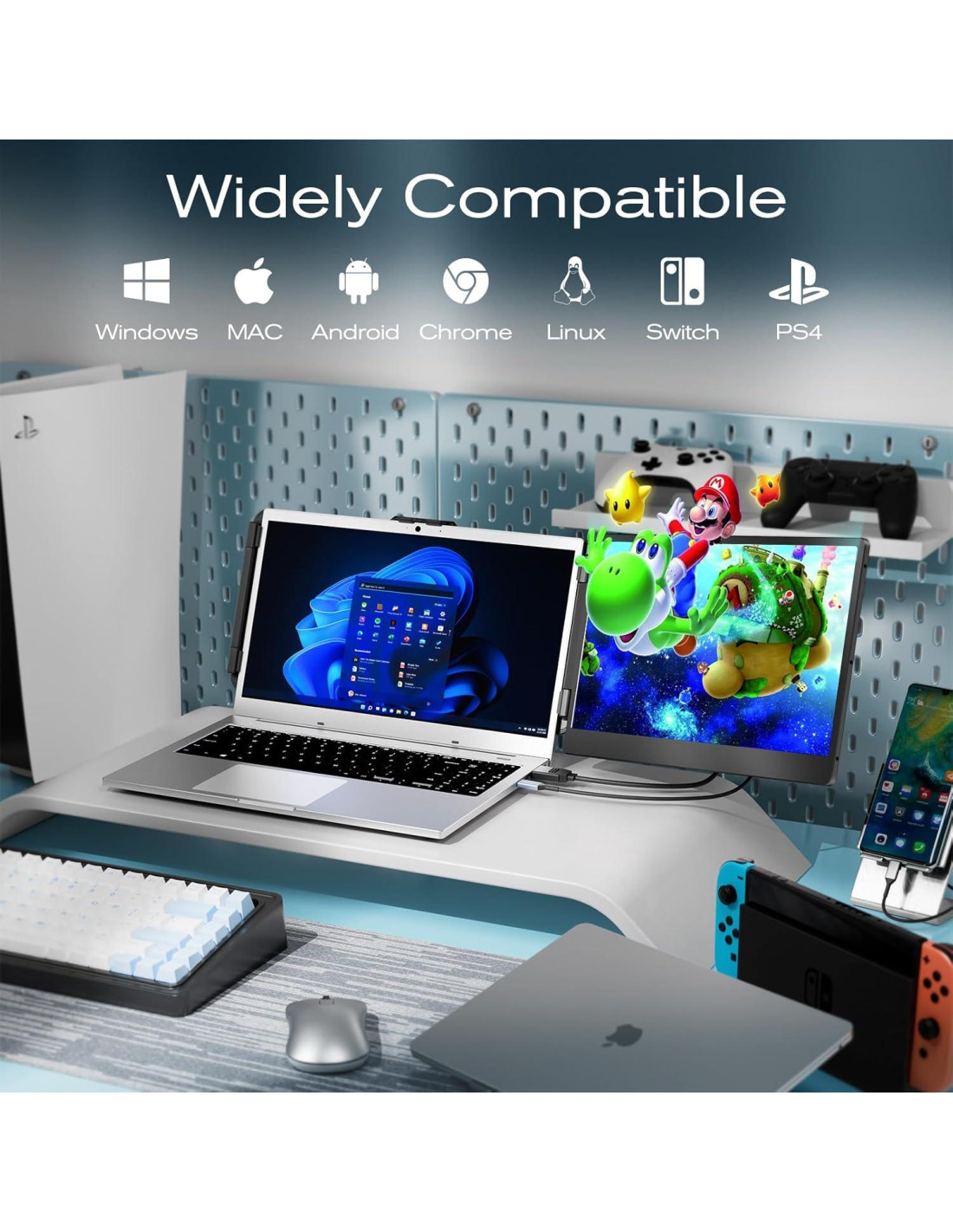 - Aplicación Versátil - Plug and play con un solo cable. Compatible con una variedad de laptops (diagonal de 13-17 pulgadas) y múltiples sistemas operativos como Windows, Mac, Chrome, Android, Linux, Dex y Switch. No se necesita descarga de controladores. Conecta el monitor a tu dispositivo sin esfuerzo con el cable Type-C/HDMI incluido y disfruta de un espacio de pantalla expandido al instante.