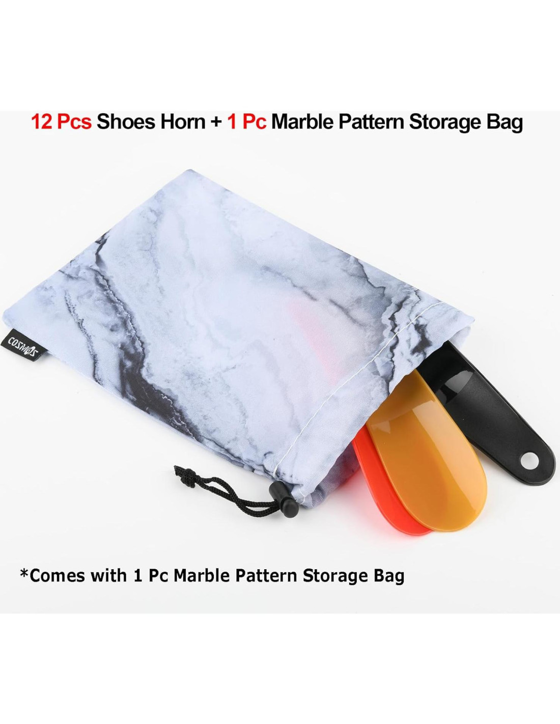 - Paquete: 12 Pcs cuerno de zapatos. Viene con bolsa de cuerda de patrón de mármol para un almacenamiento conveniente.