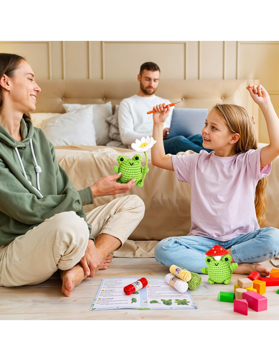 - Kit de Inicio de Crochet Todo en Uno: El kit de crochet para principiantes de CROCHETTA incluye todo lo que necesitas para comenzar: 6 hilos de diferentes colores, suficiente relleno, 1 aguja de hilo, 4 ojos de seguridad, 5 marcadores de puntadas, 2 ganchos de crochet ergonómicos, 1 par de tijeras, 1 pegamento caliente, 1 tallo de flor, 1 patrón de rana de margarita de crochet y hongo, y un manual básico de crochet para principiantes.