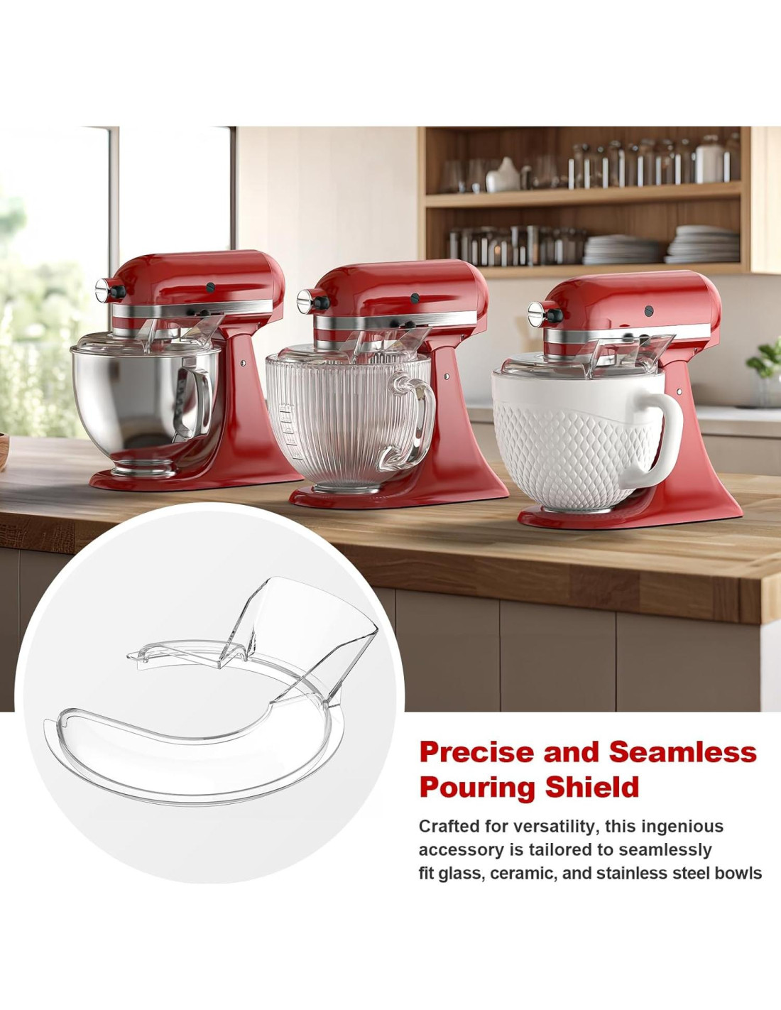 - Diseño de Protector contra Salpicaduras con Protector de Vertido KitchenAid: Nuestro Protector de Vertido, diseñado específicamente para los tazones KitchenAid, se coloca sobre el tazón de su mezclador KitchenAid de 4.5-5qt, previniendo eficazmente salpicaduras y derrames al verter ingredientes.