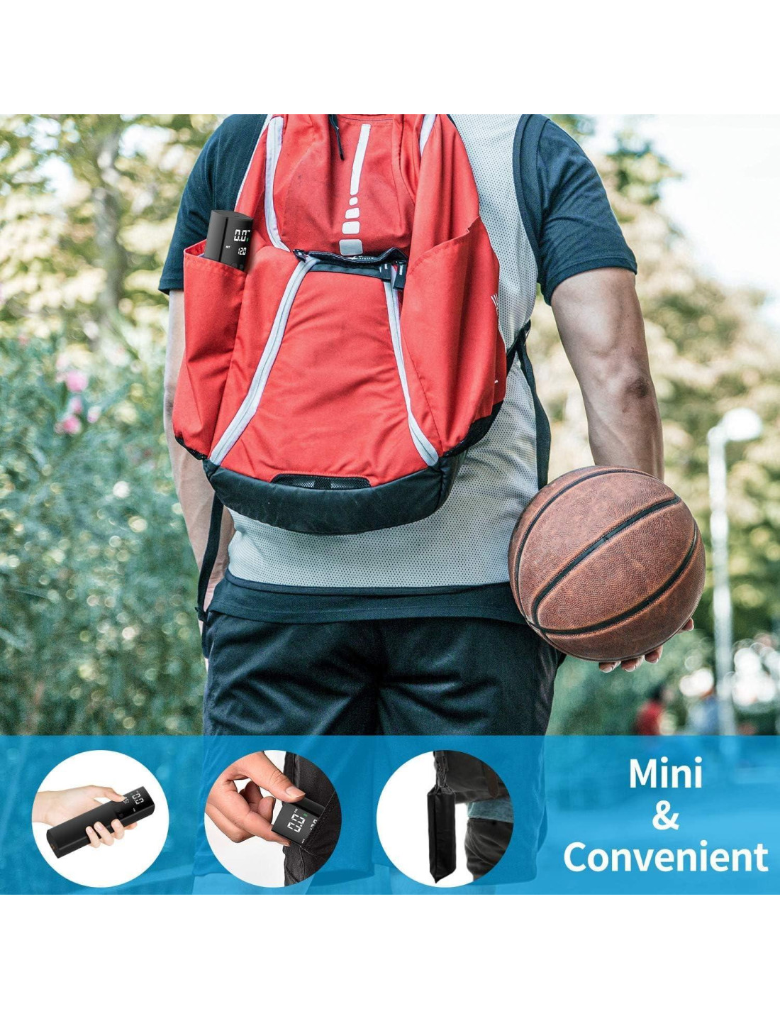 - Diseño Compacto y Portátil: Tamaño: 6.29*1.57*1.57 pulgadas (16,00*4,00*4,00 cm), Peso: 0.55 lbs (0,25 kg), cabe en tu bolsa, tu bota o incluso tu bolsillo. Te permite llevar esta mini bomba a donde la necesites para mantener tus pelotas infladas. Con luces LED brillantes y pantalla LCD retroiluminada, es conveniente usar la bomba de pelotas por la noche o en lugares oscuros
