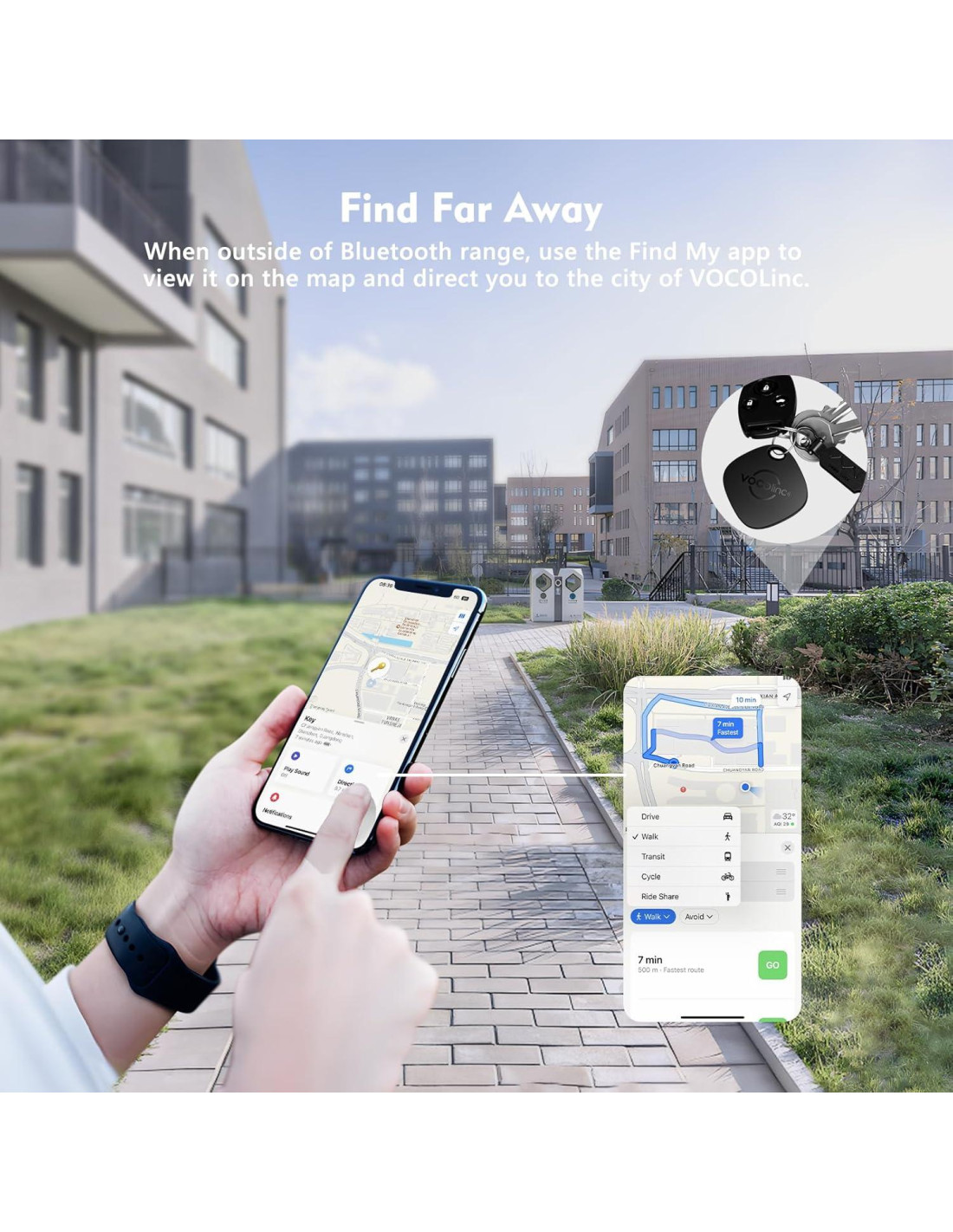 - [Encontrar Cerca] : Hasta 200 pies/60 m de rango Bluetooth, seguimiento a larga distancia. Puedes usar la app Find My para encontrar tus artículos perdidos cuando el rastreador VOCOlinc airtag esté dentro del rango, o simplemente pedir ayuda a Siri. El altavoz incorporado (sonido fuerte, 80-100 dB) reproduce un sonido de beep para ayudarte a encontrar tus cosas. Cuando tu artículo está perdido, el rastreador Vocolinc AirTag puede guiarte hacia él o actualizarte sobre su última ubicación.
