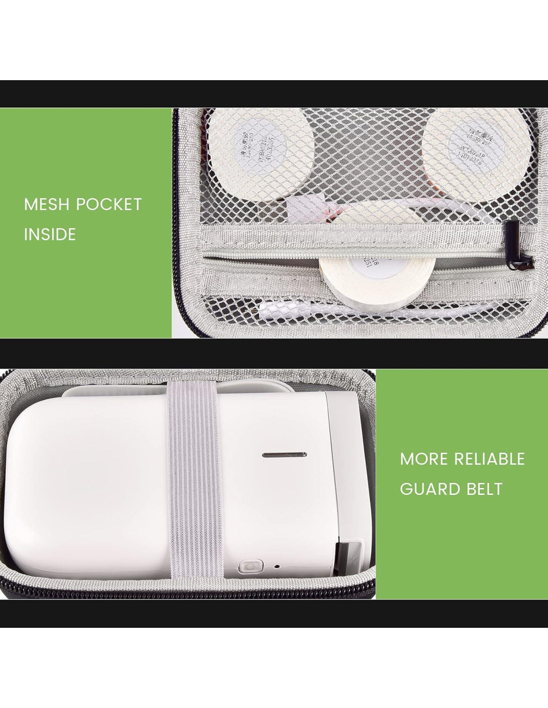- BOLSILLO DE MALLA CON CREMALLERA PUEDE SOSTENER 6 ROLLOS DE PAPEL - Cremallera suave pero fuerte para facilitar la apertura y el cierre, el bolsillo de malla adicional permite almacenar 6 cintas de etiqueta adicionales y un cable USB, el diseño de almacenamiento jerárquico razonable mantiene su impresora de etiquetas bien organizada y segura.