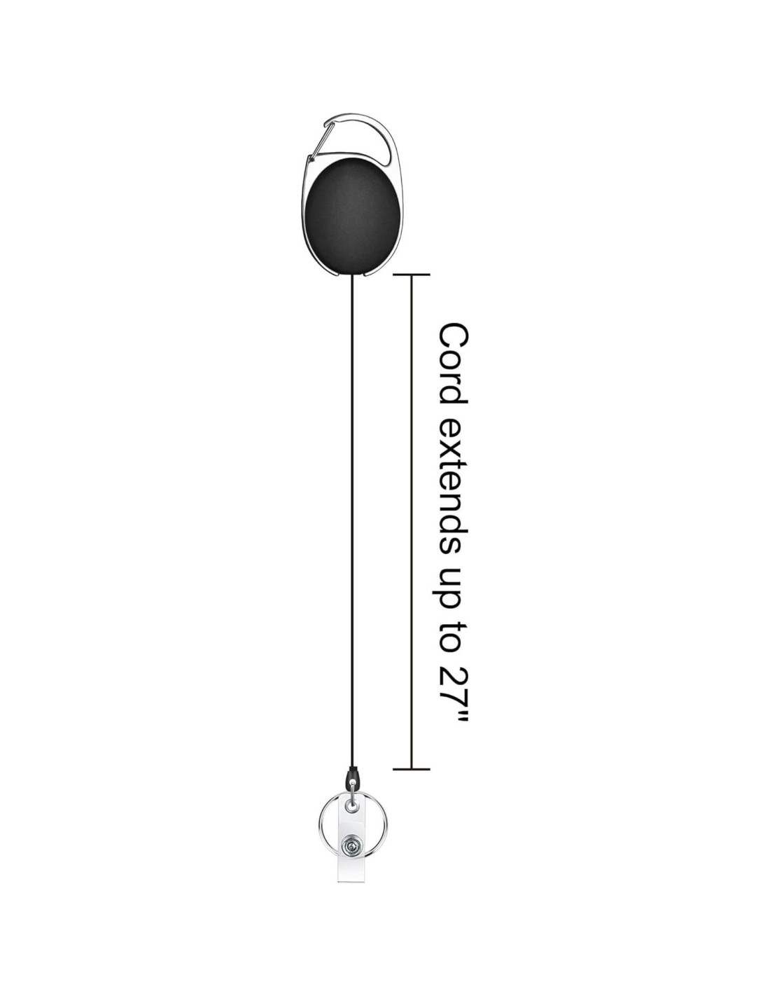 - TAMAÑO DEL PRODUCTO: El tamaño del carrete retráctil es: 2 1/8" (5,40 cm) x 1 3/4" (4,45 cm); El cordón retráctil mide 27" (68,58 cm) de largo