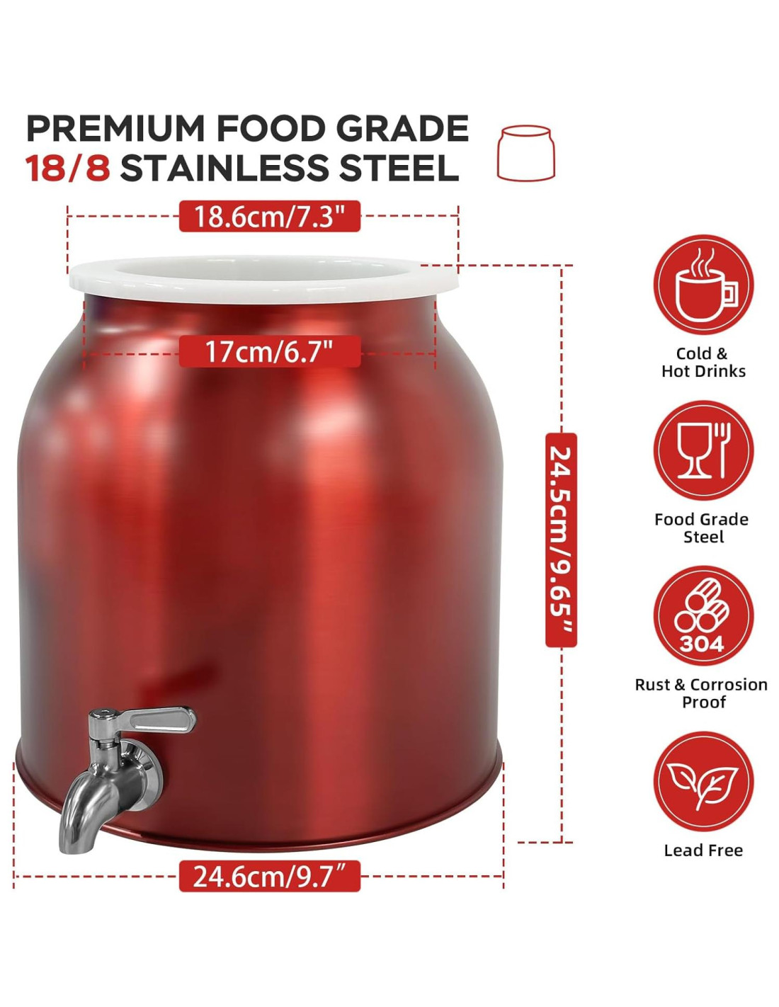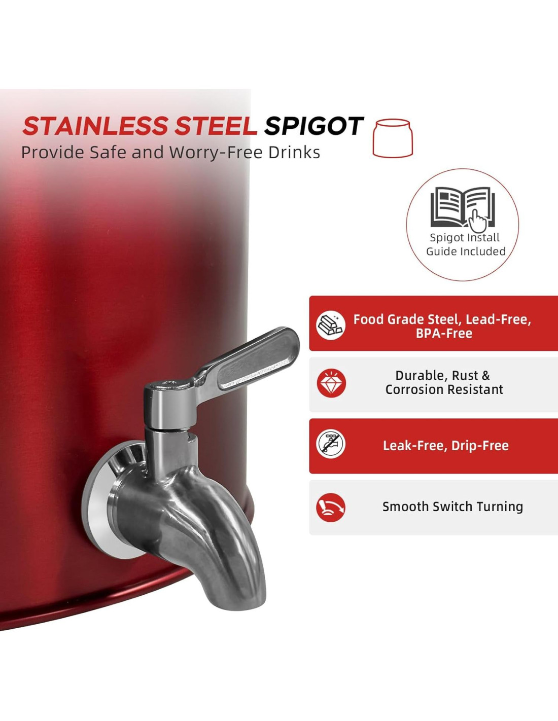 - GRIFO DE ACERO INOXIDABLE 18/8 - El grifo de este dispensador de agua de acero inoxidable también está hecho de acero inoxidable 18/8 de alta calidad sin recubrimiento ni pintura, lo que lo hace seguro para beber. Sin goteos, libre de plomo y a prueba de óxido, proporcionando un uso a largo plazo. Interruptor suave, fácil de usar. (Fácil de ensamblar, simplemente siga el manual y asegúrese de que cada paso esté instalado de manera segura.)