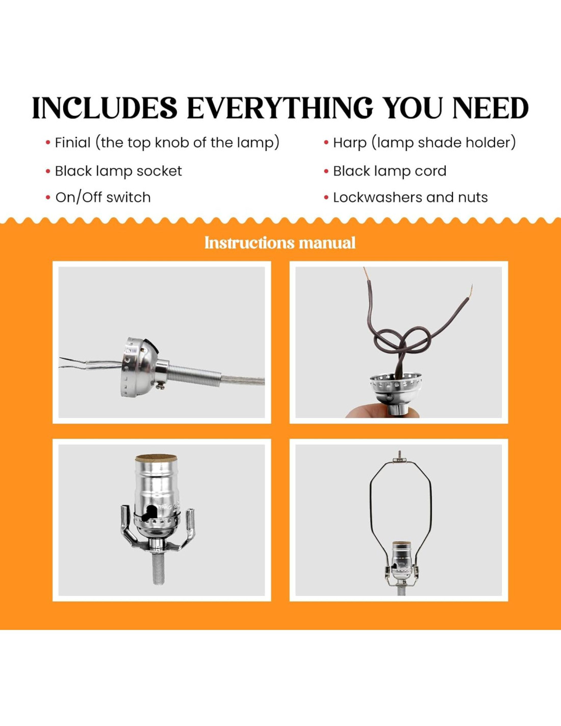 - Los componentes eléctricos están listados por UL, lo que garantiza que son seguros para volver a cablear o reutilizar lámparas antiguas o de tiendas de segunda mano. ¡Dale nueva vida a cualquier lámpara antigua!