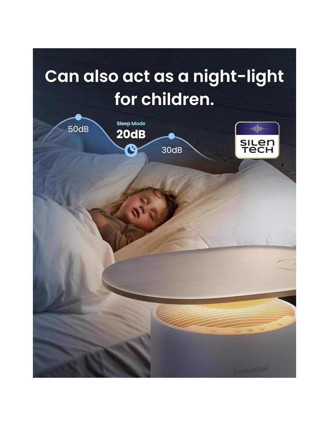 - Más Que Solo un Purificador de Aire: Puedes usar el purificador de aire SwitchBot como una mesa de café, con carga inalámbrica para tu teléfono al colocarlo en el panel; también puedes usarlo como una mesa auxiliar en tu hogar, permitiendo que el purificador de aire se integre perfectamente en tu espacio; o puedes usarlo como una luz ambiental para mejorar la atmósfera en tu hogar. ¡SwitchBot es la opción perfecta para cualquier espacio!