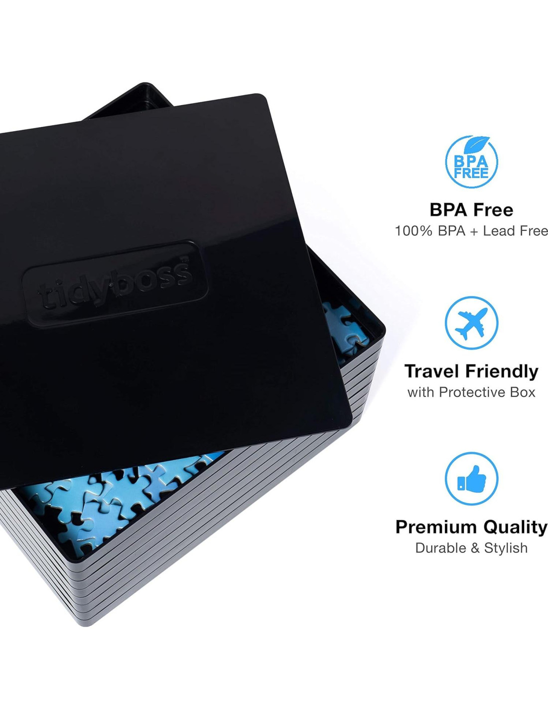- Las Piezas Destacan en Bandejas Negras: Los verdaderos entusiastas de los rompecabezas necesitan accesorios serios para rompecabezas. Mientras que otras bandejas coloridas pueden ser 'lindas', no te preocupas por ellas porque hablas en serio. Como un maestro entusiasta de los rompecabezas, sabes que las piezas destacan mejor en fondos neutros, lo que facilita la clasificación y resolución. Además, son la mejor manera de ocultar el polvo y la suciedad que se cuelan en tus bandejas y distraen de tus piezas.
