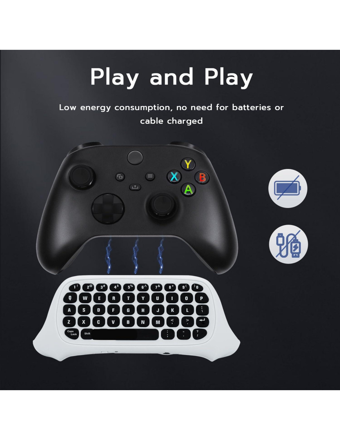 - Fácil de usar. Simplemente conecta el teclado al controlador inalámbrico de Xbox One, Slim, X, Series S, Series X e inserta el receptor 2.4G en cualquier interfaz USB de la consola. Luego puedes chatear con jugadores en línea mientras disfrutas del juego.